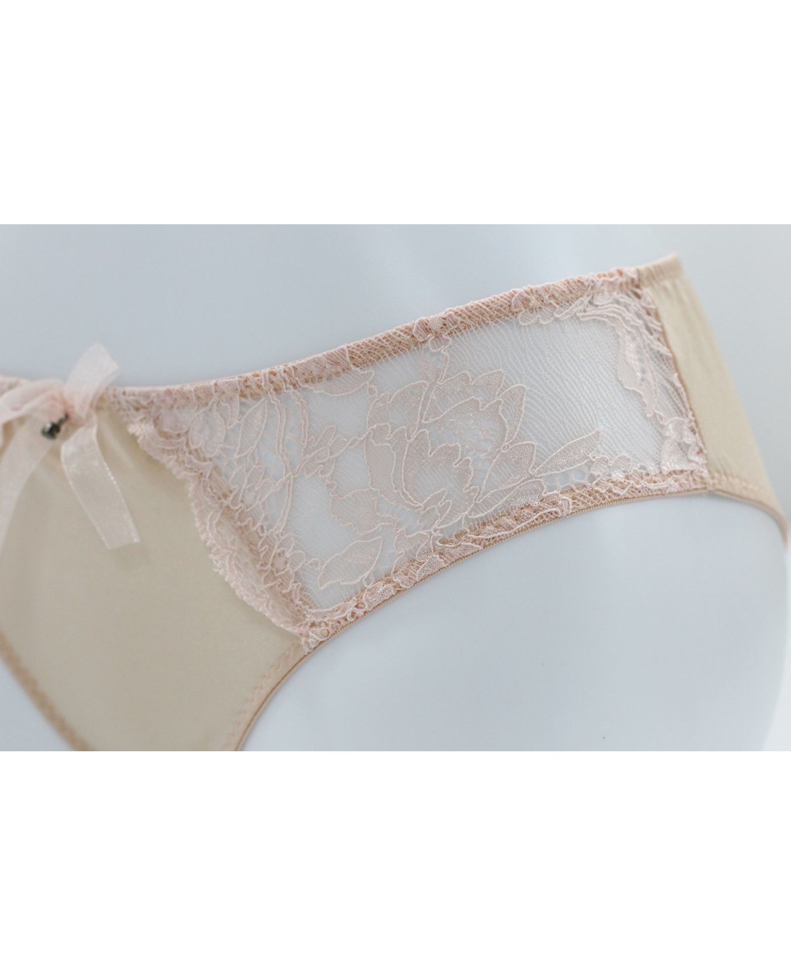 Женские плавки пудрового цвета с кружевом