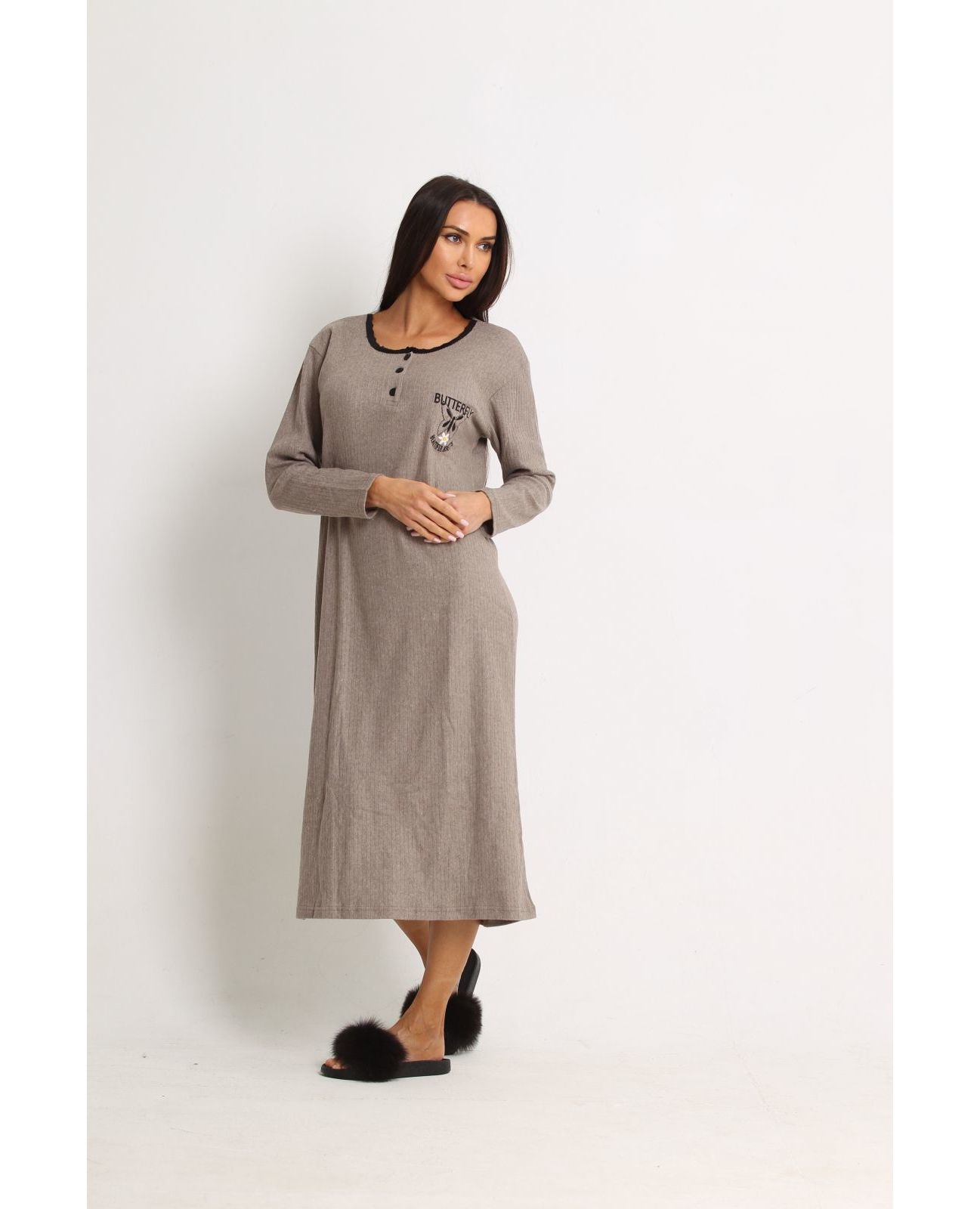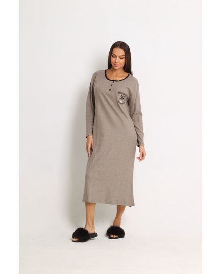 Ночная рубашка длинная с длинным рукавом LINDROS, коричневая, 100% хлопок