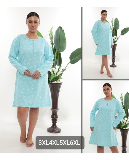 Тёплая ночная сорочка с длинным рукавом, бирюзового цвета