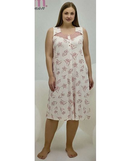 Ночная сорочка нежного бежевого цвета с цветочным узором. На широких бретелях вырез отделаный кружевом. Спереди 4 пуговицы Длинная