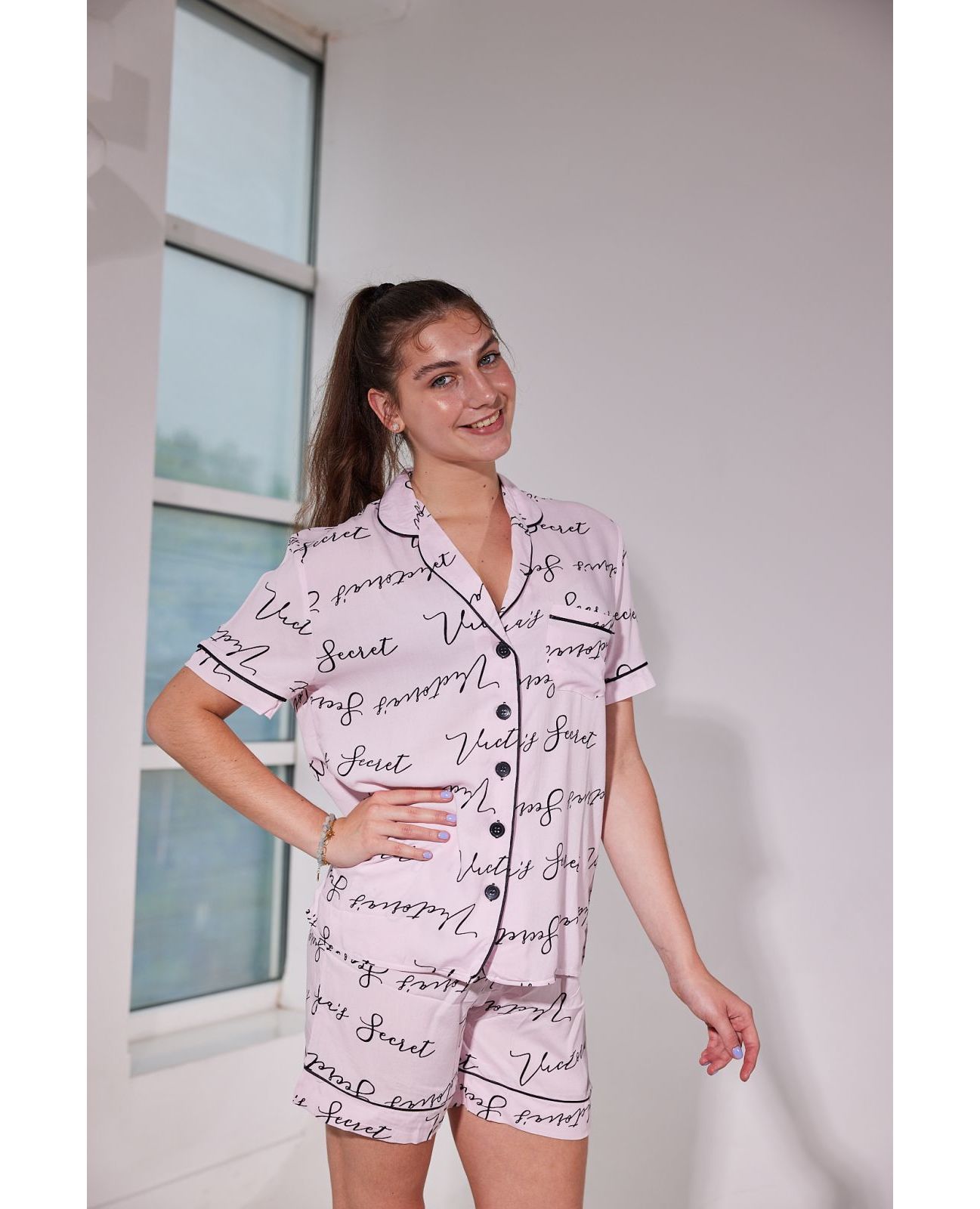 Уютная и женственная пижама из натурального хлопка подарит комфорт и хорошее настроение. В комплект входит рубашка на пуговицах с карманом и шорты. Розовый цвет с контрастными чёрными надписями Victoria’s Secret подчёркивает стиль и изящество.