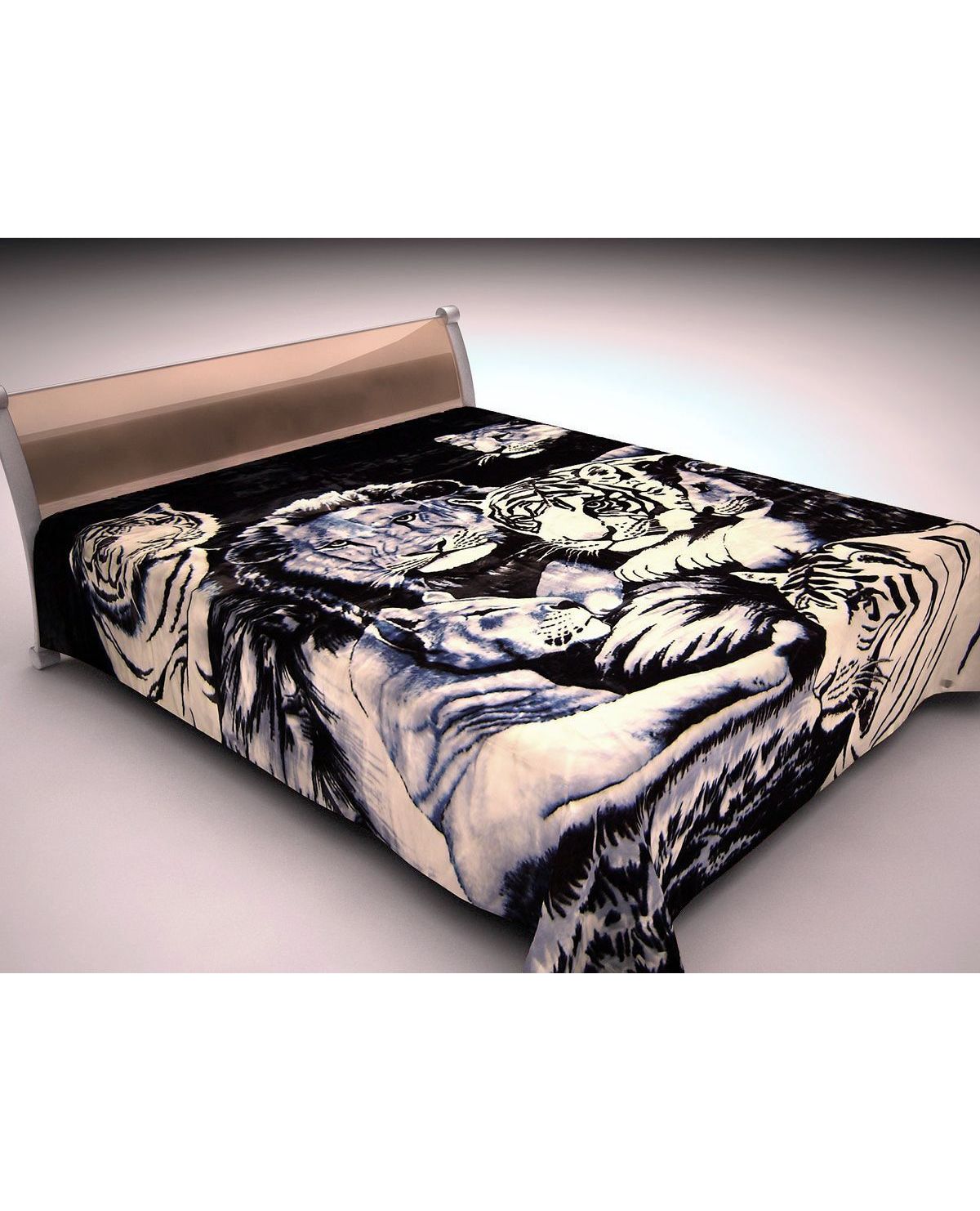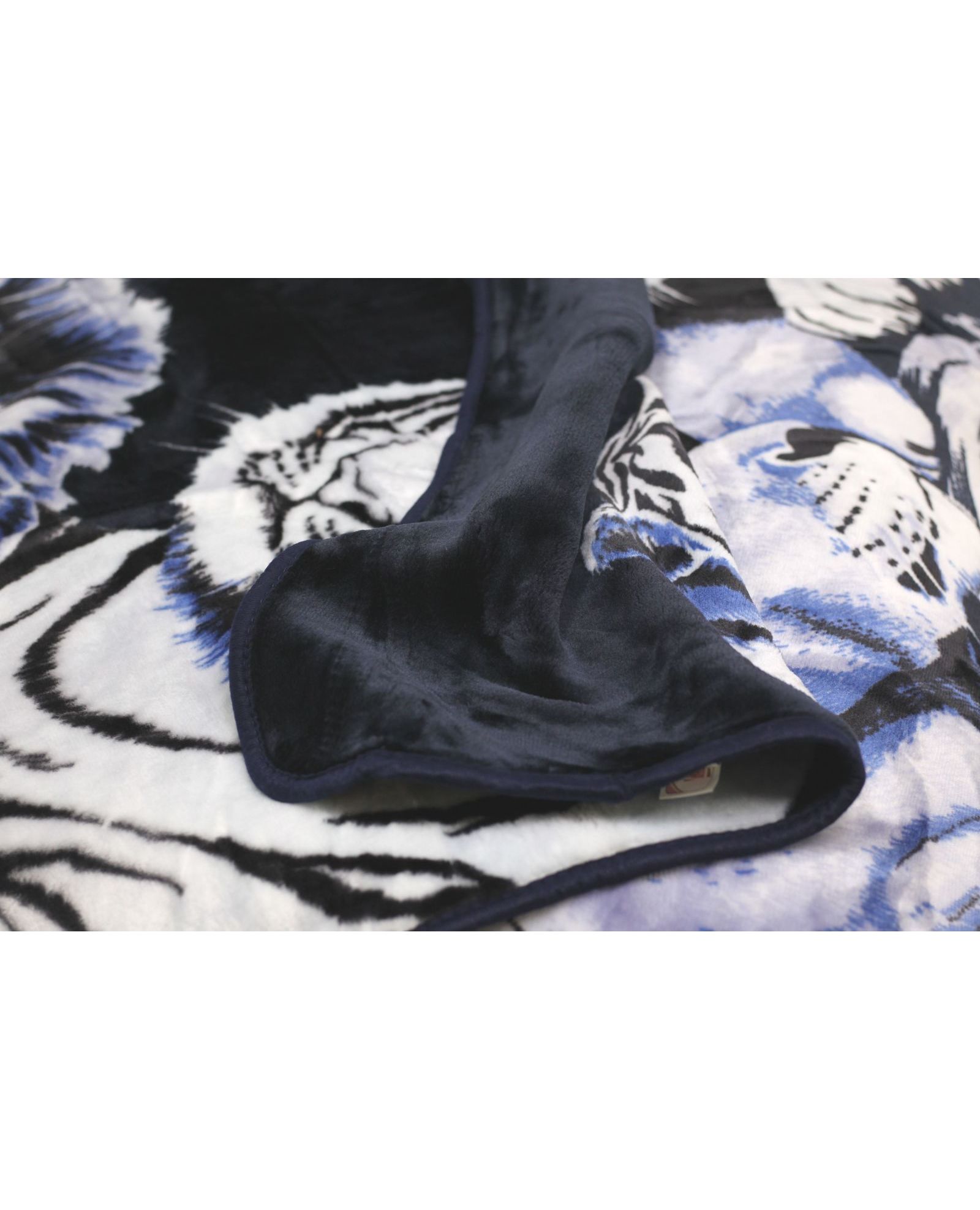 Плед Ispana Gold 200×240 см, синий с чёрным и изображением тигров