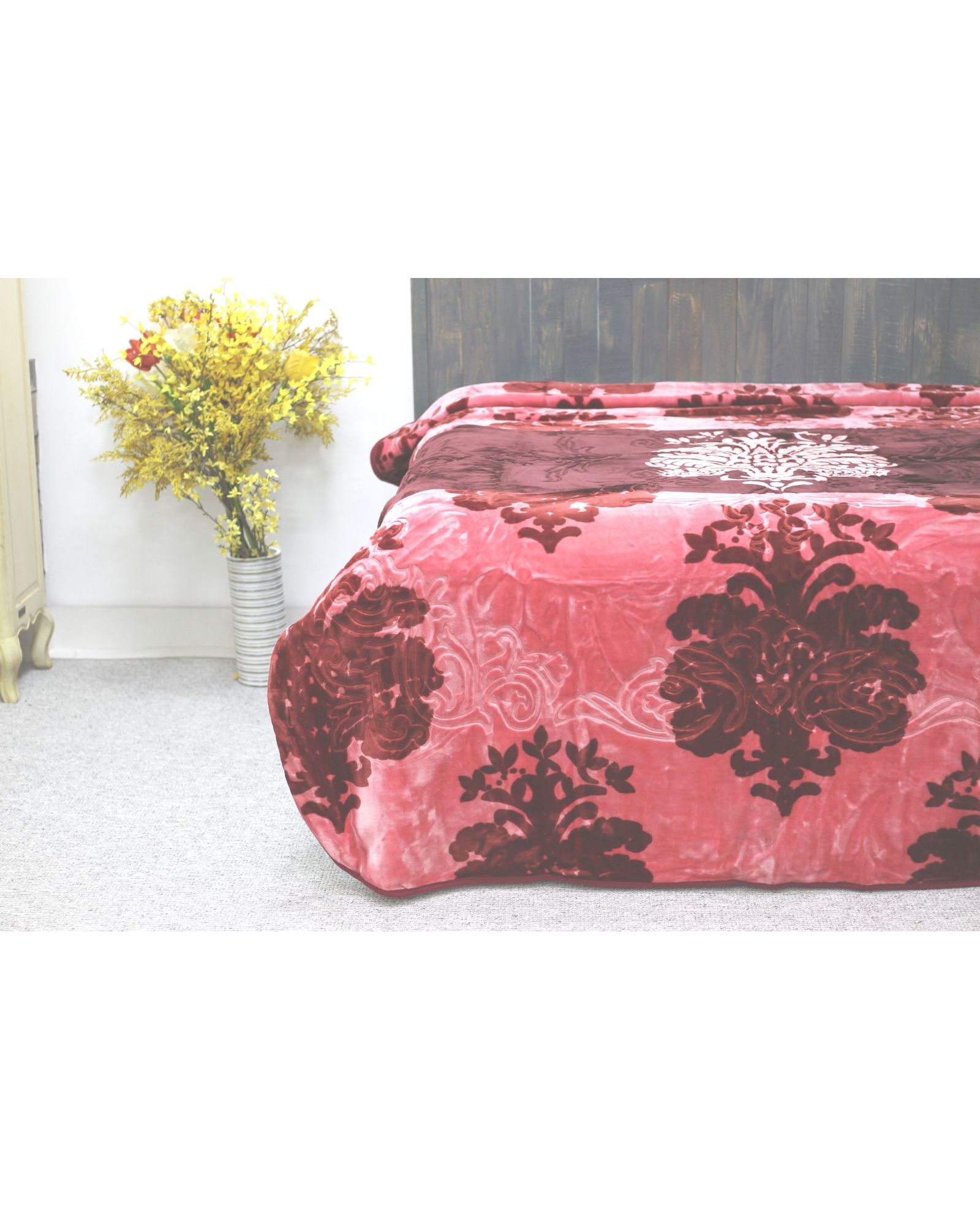 Плед SUPERON 220×240 см, зелёный или бордовый с растительным принтом