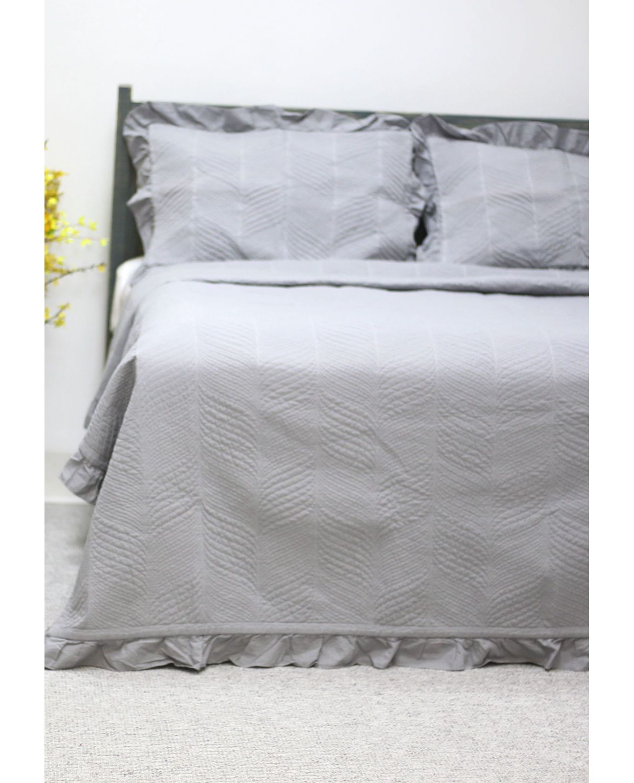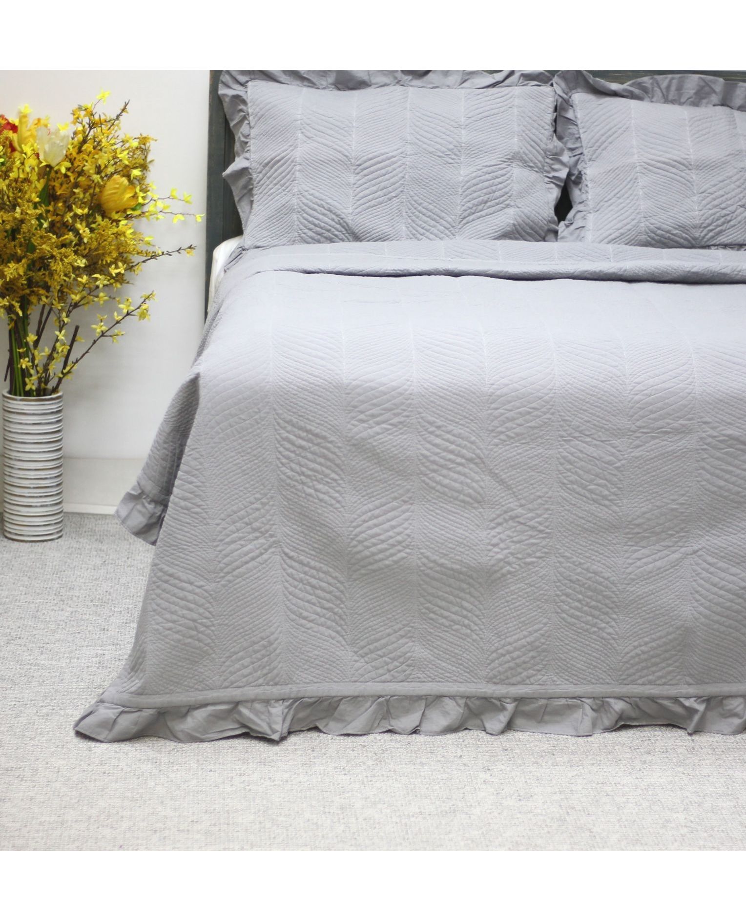 Придайте интерьеру вашей спальни элегантности и уюта с роскошным покрывалом серого цвета. Изготовленное из 100% натурального хлопка, оно дарит мягкость, комфорт и долговечность.