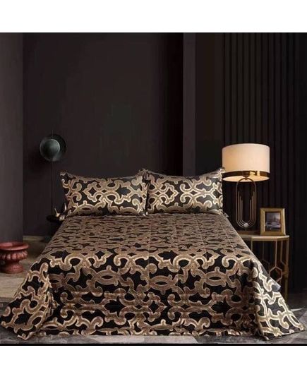 Роскошное покрывало LA PERLA 250×260 см в чёрном и золотистом цвете