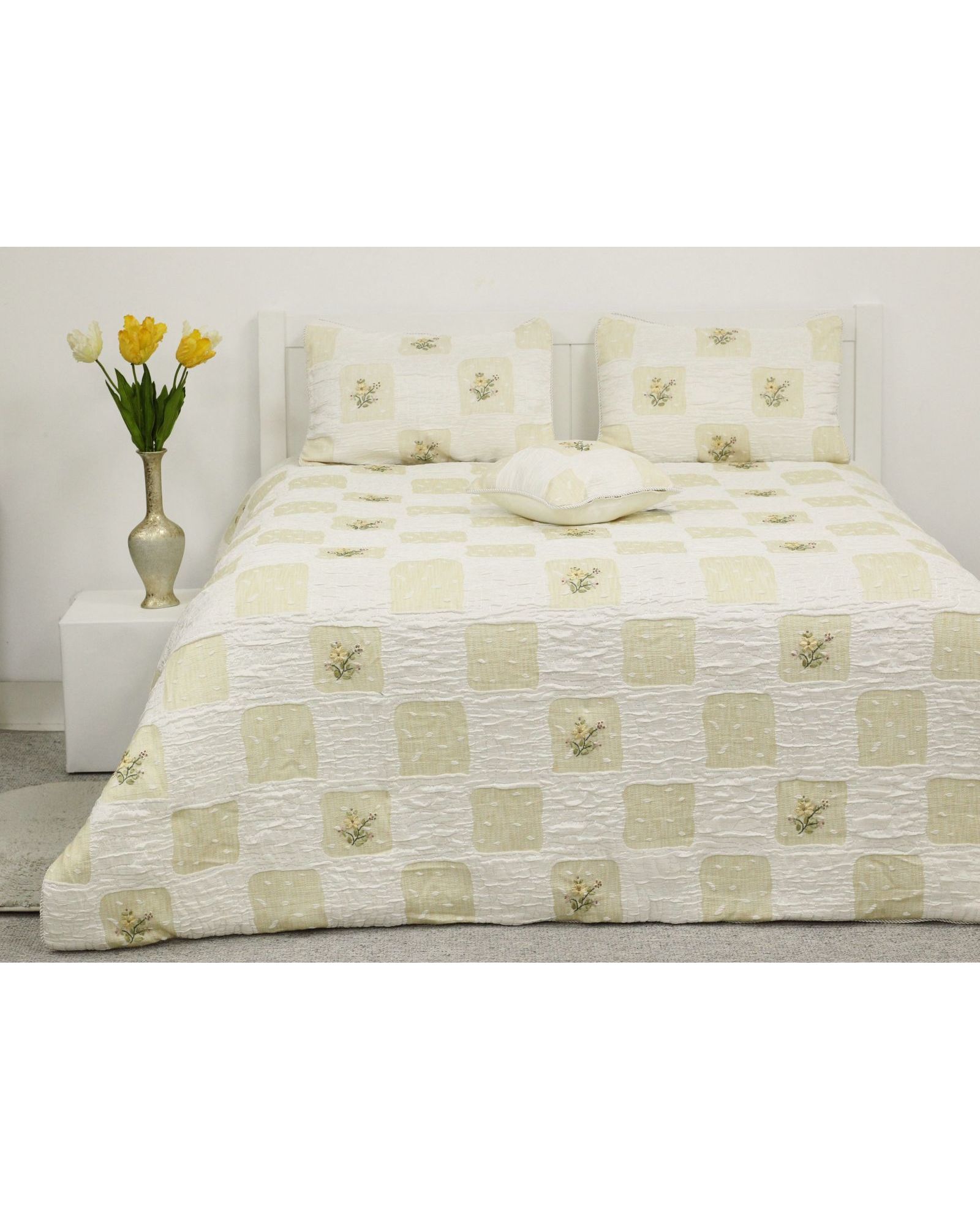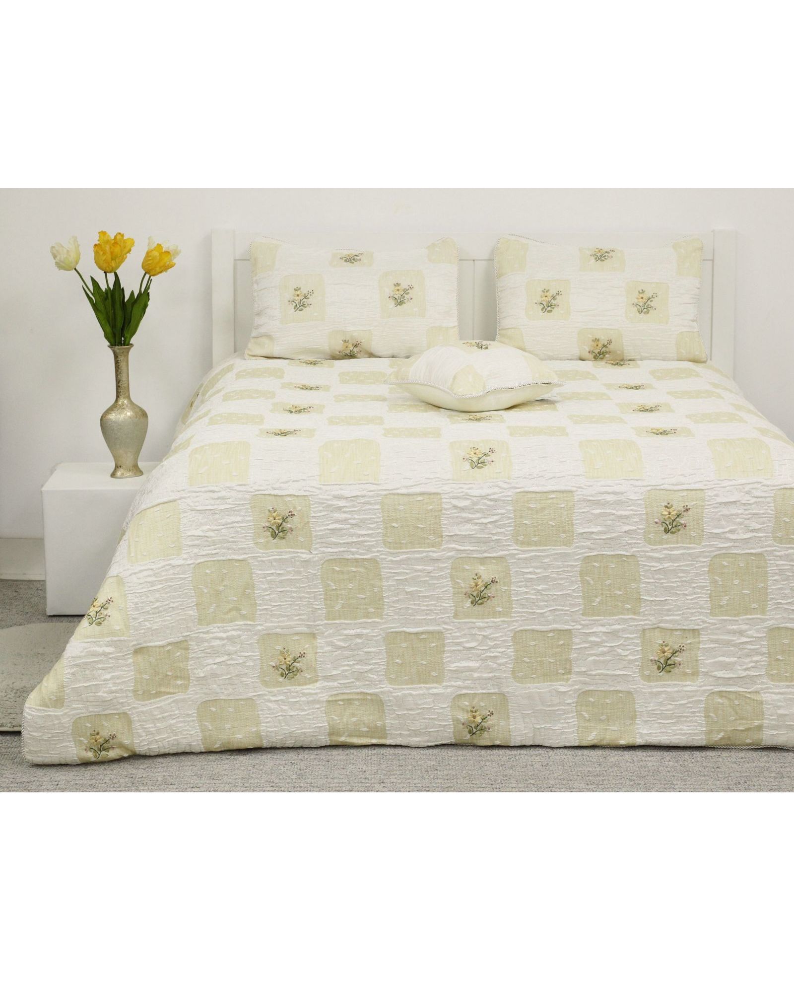 Это стильное покрывало молочного цвета с вышитыми цветами, выполненными лентой, придает элегантность и утонченность вашему интерьеру. В комплект входят 2 наволочки 50×70 см и одна 40×40 см, что обеспечивает гармоничный вид в спальне. Покрывало изготовлено из полиэстера и хлопка, что гарантирует износостойкость и комфорт при использовании.