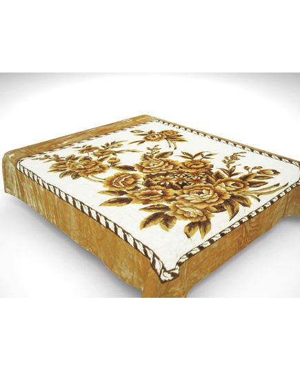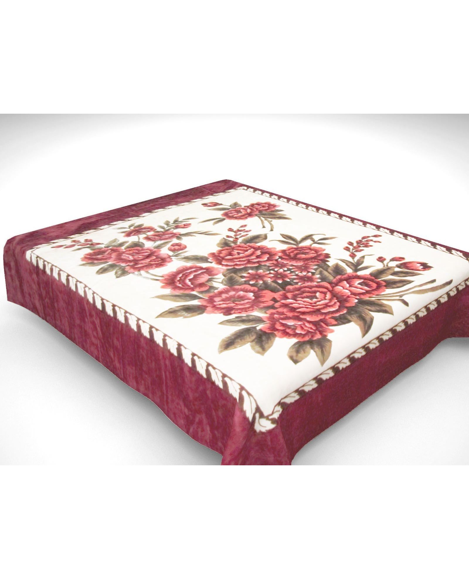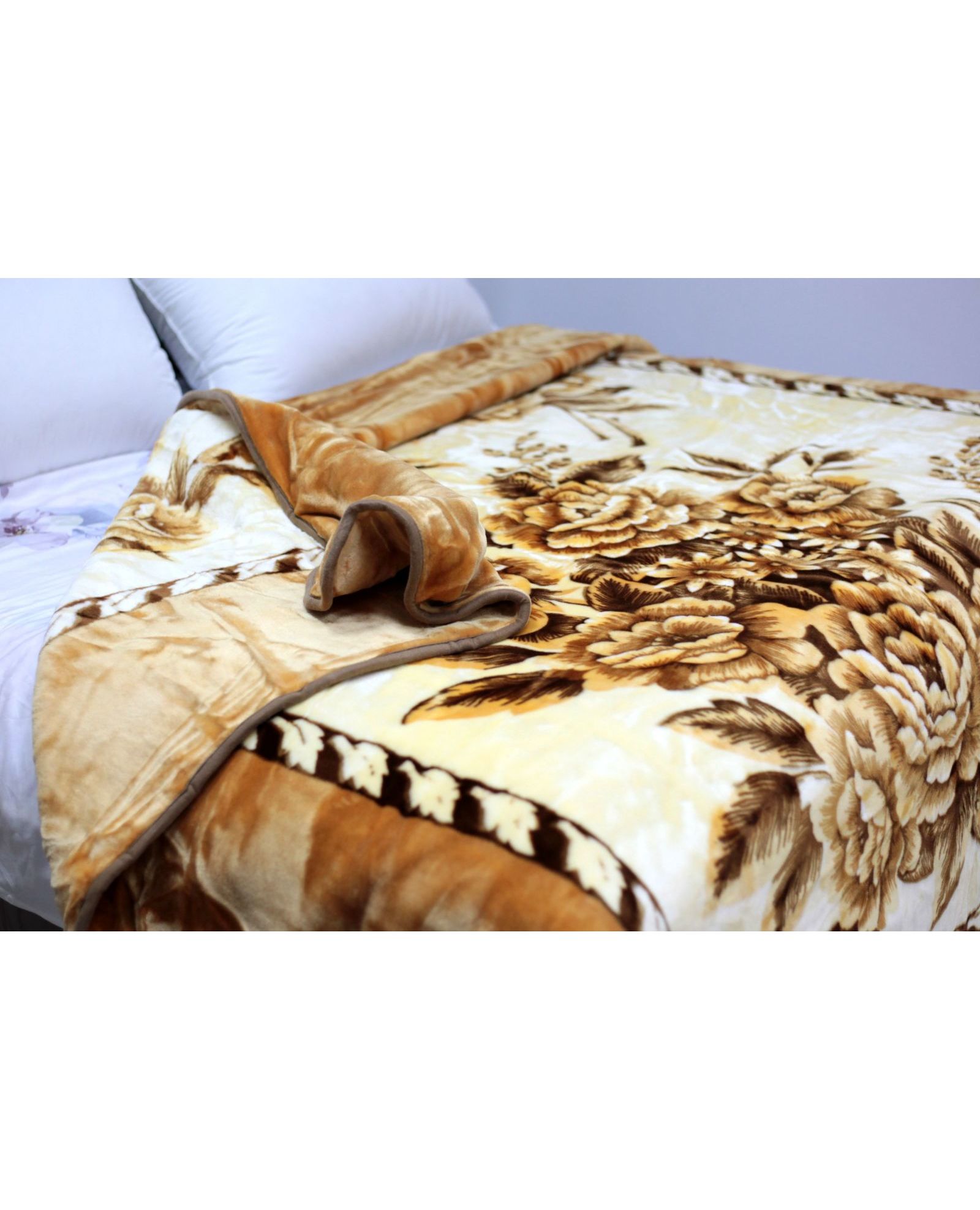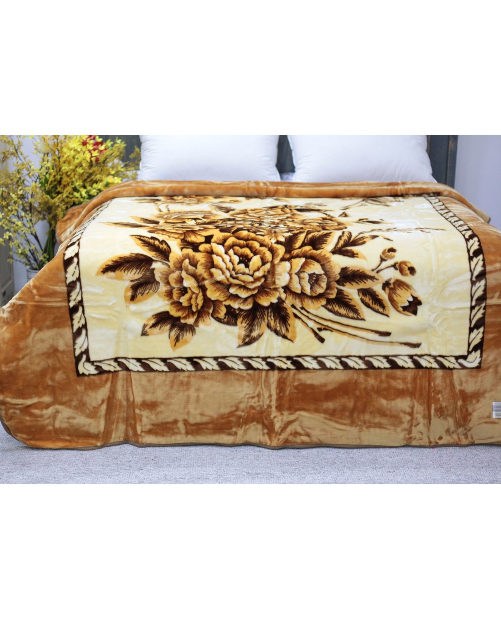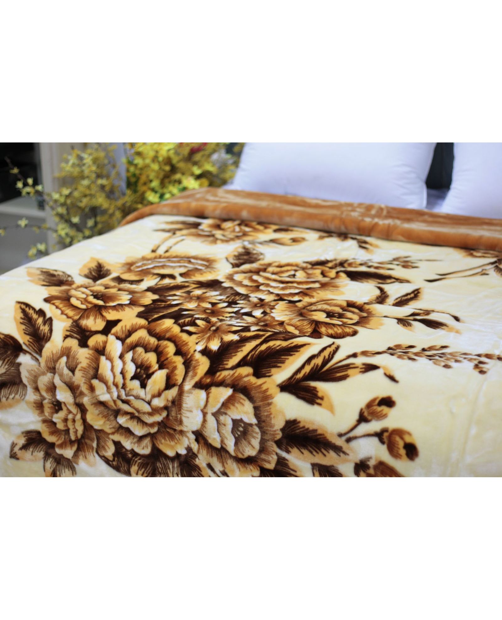 Плед PREMIER GOLD 220×240 см, горчичный или бордовый с цветочным узором
