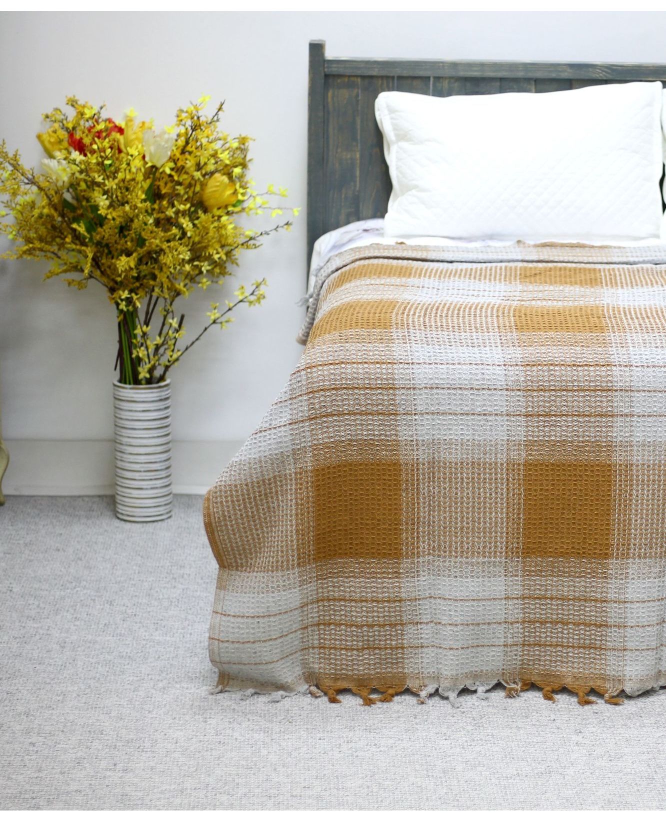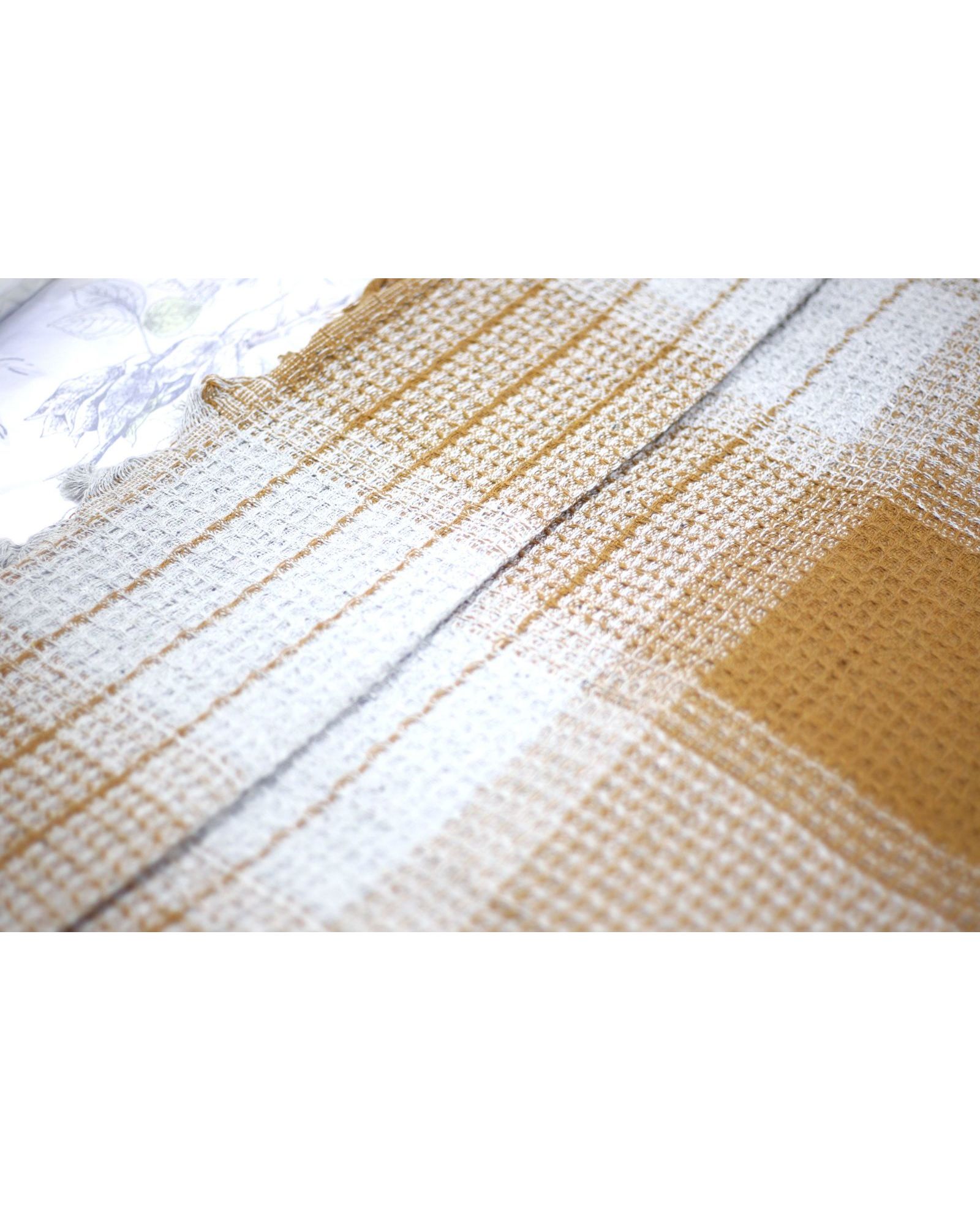 Покрывало - плед вафельное с кисточками 200×230 см коричневого цвета