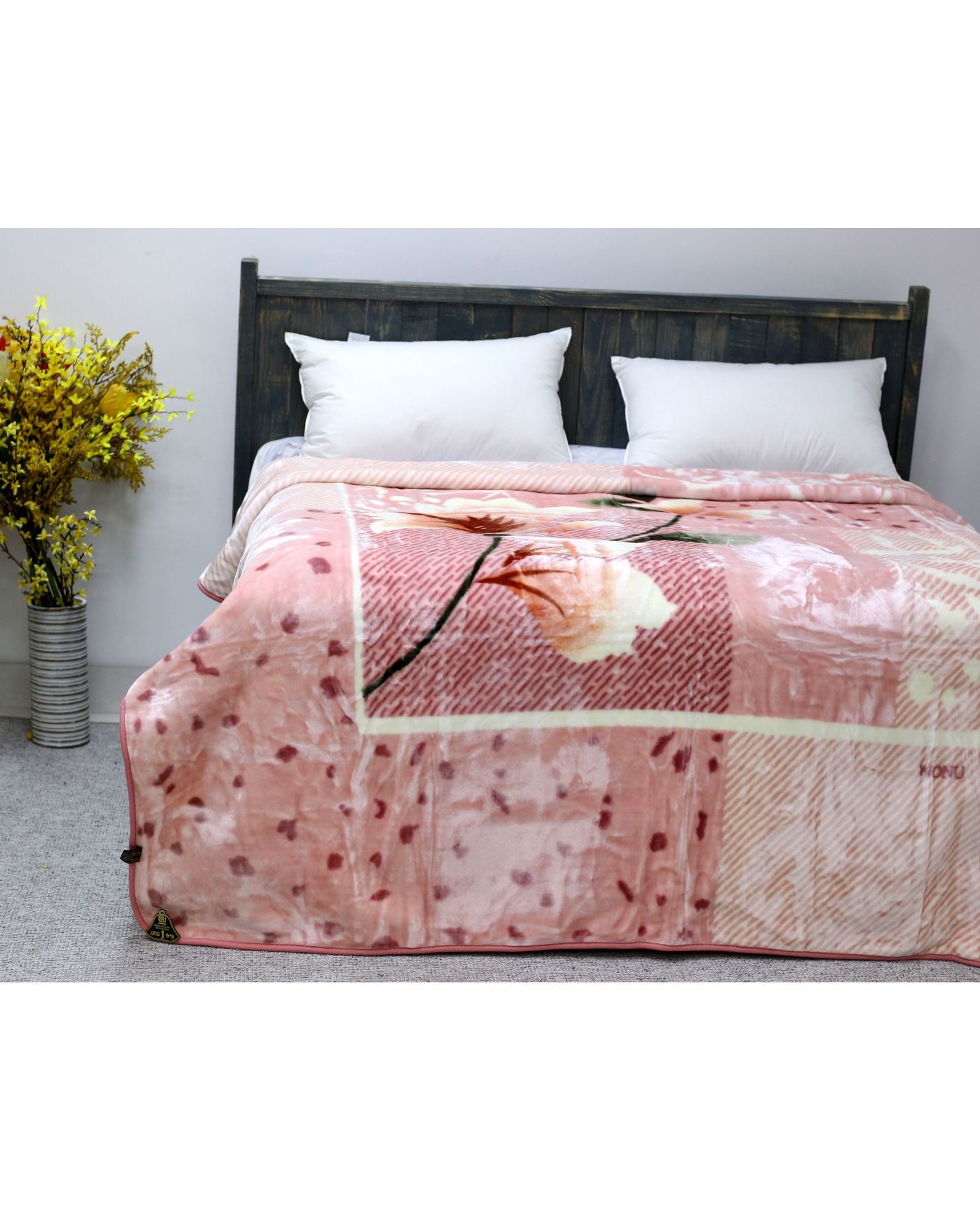 Плед акриловый 220×240 см розовый с цветами
