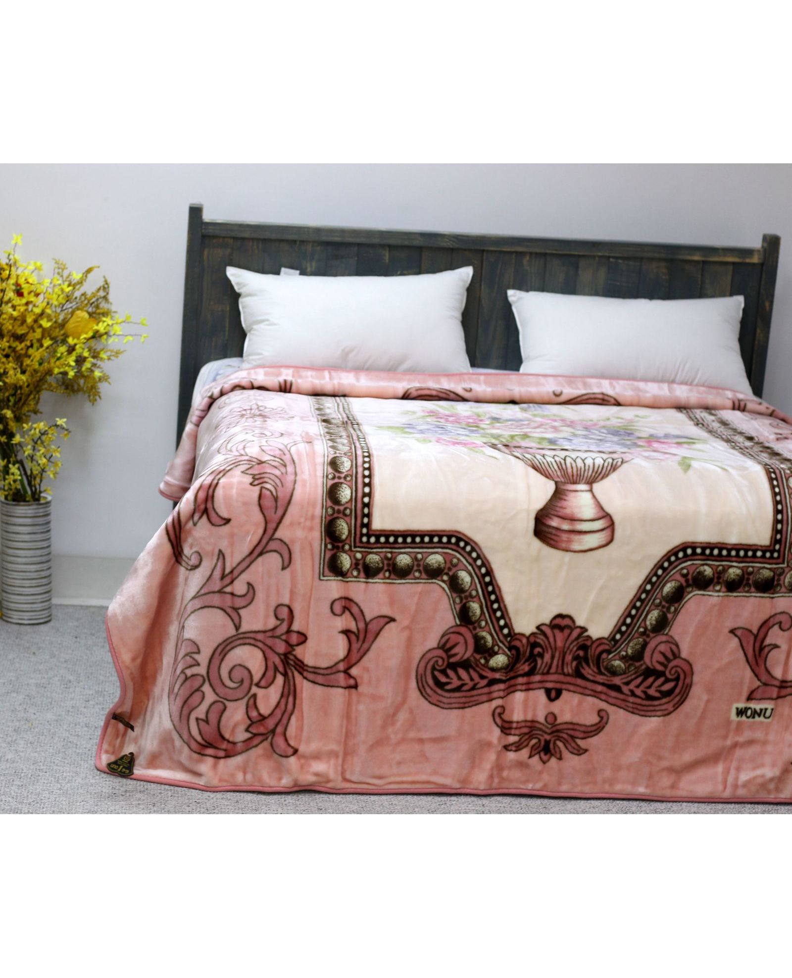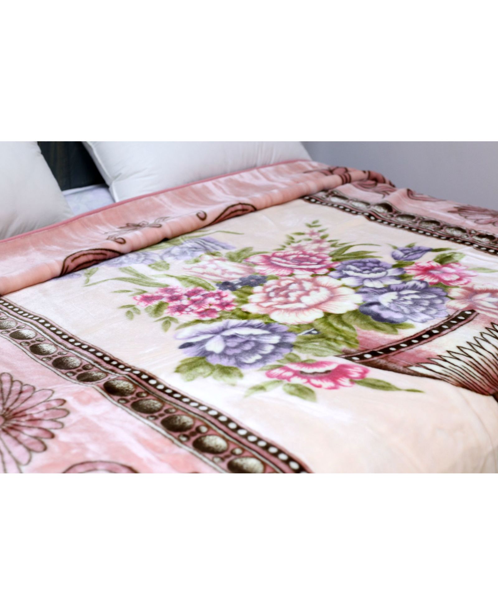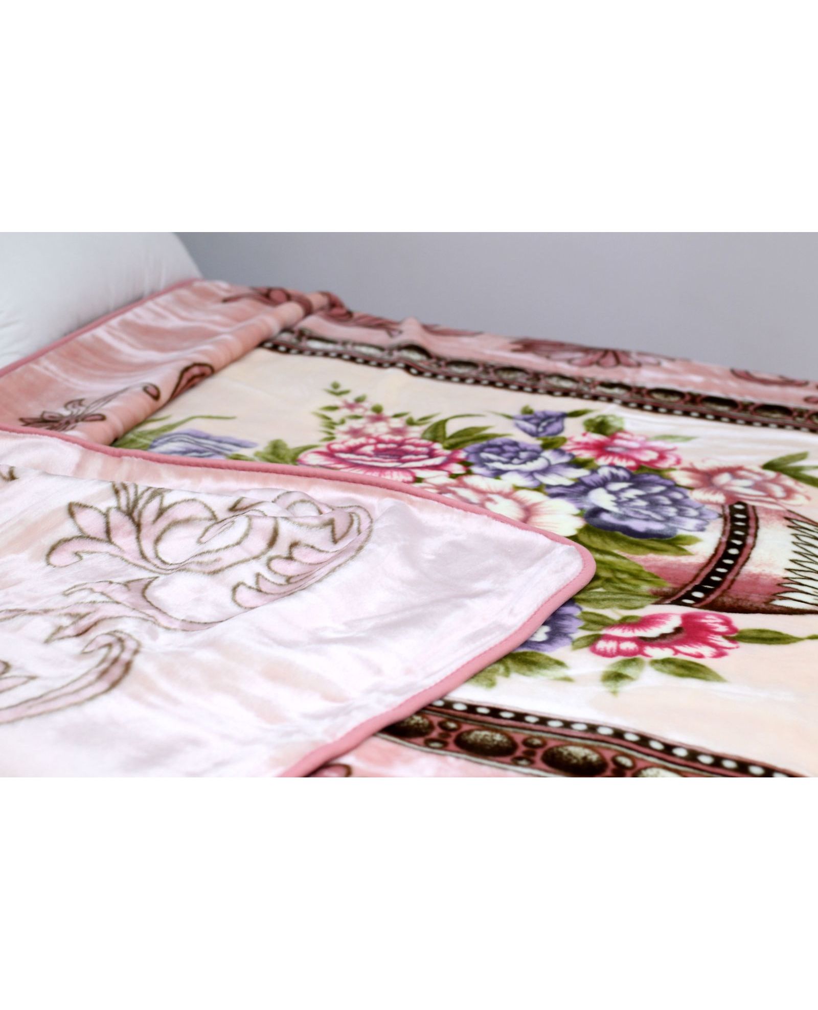 Этот плед в мягком пудровом оттенке с утонченным цветочным рисунком наполняет дом уютом. Он приятный на ощупь и идеально подходит для ежедневного отдыха.