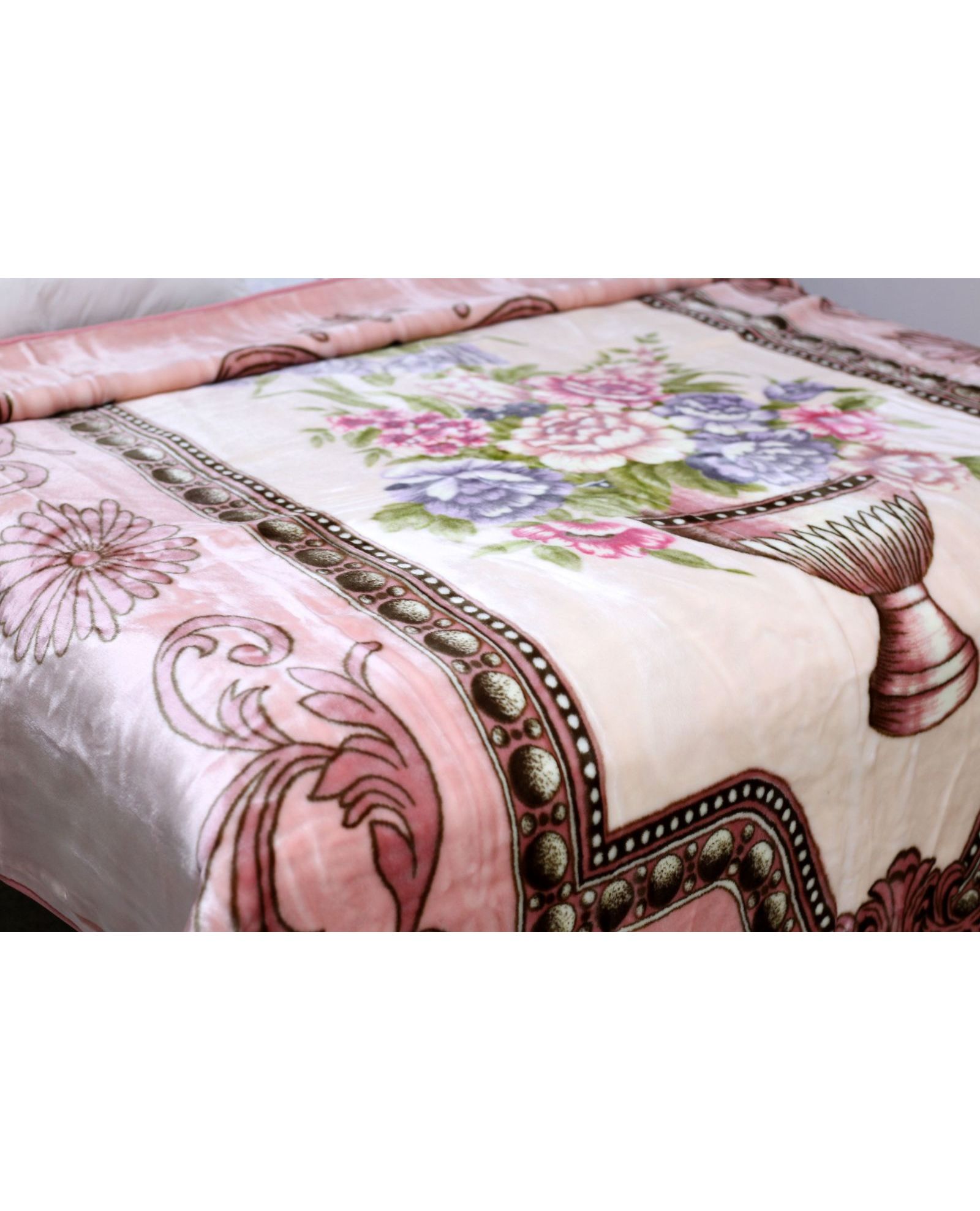 Плед акриловый 220×240 см пудровый с цветами