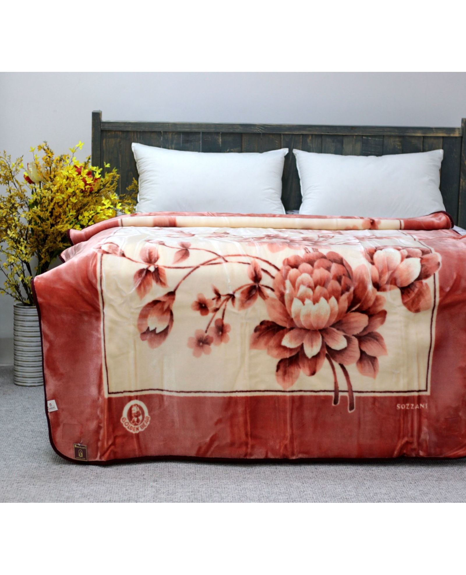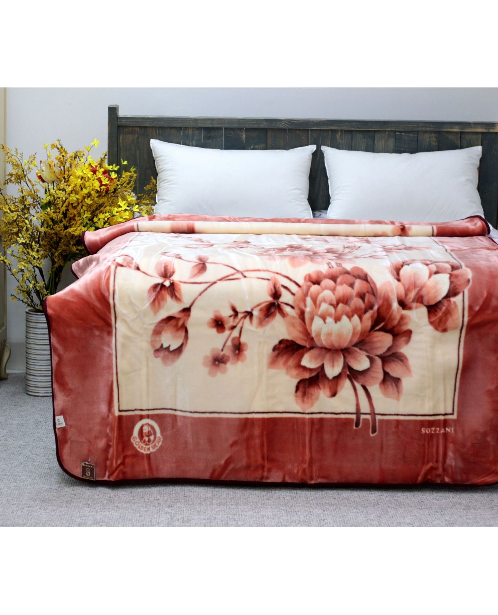 Элегантный плед с красивым цветочным рисунком станет отличным украшением любого интерьера. Представлен в трёх привлекательных цветах — бежевом, зелёном и красном, что позволяет легко подобрать вариант под ваш стиль.
