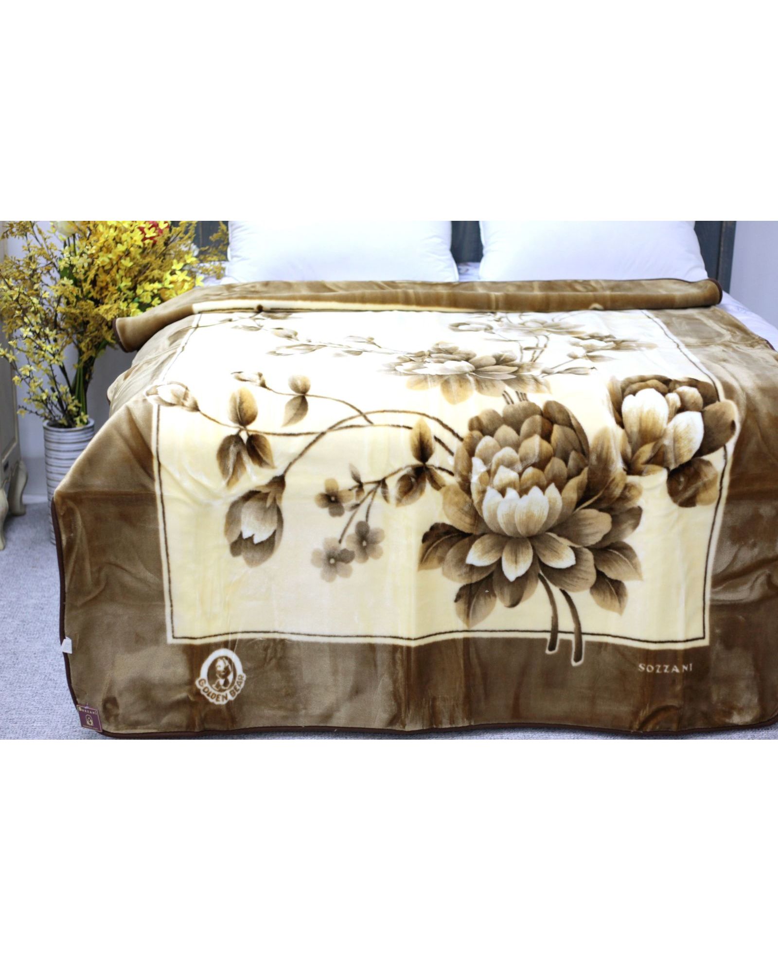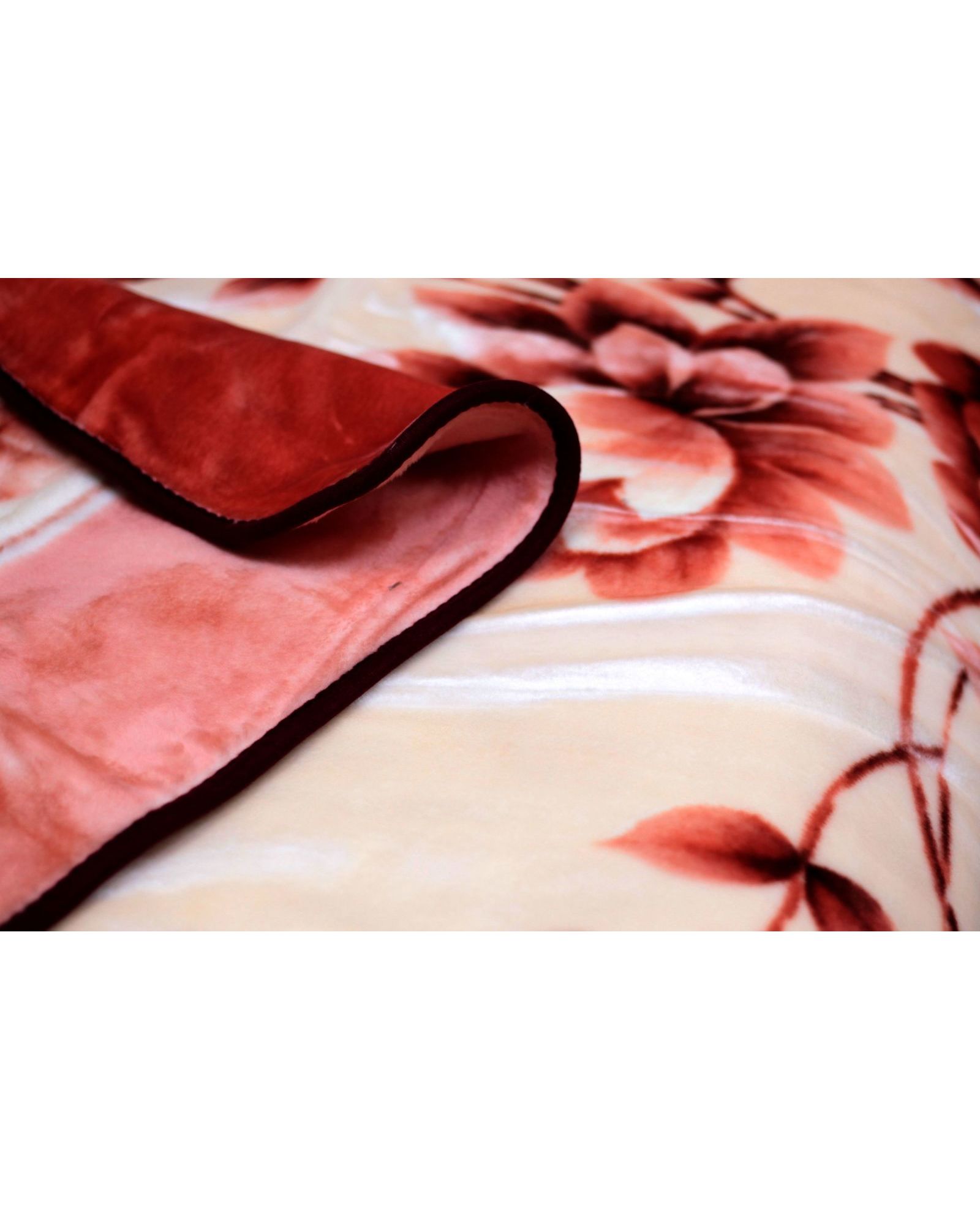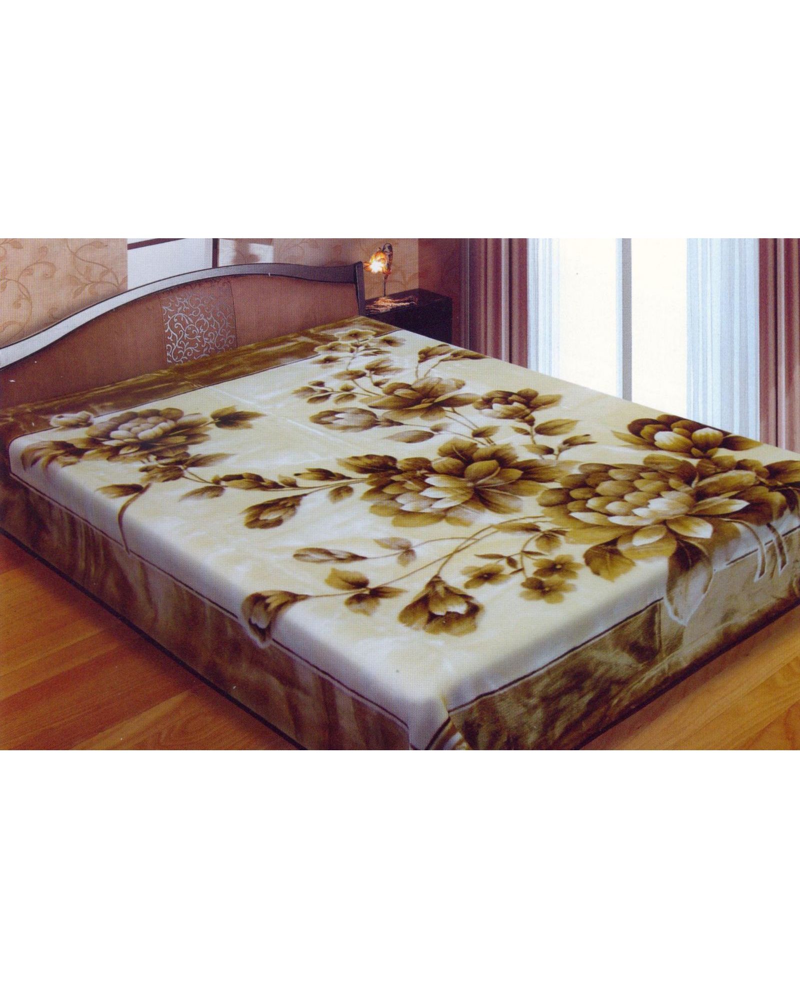 Плед акриловый 160×220 см с цветочным узором (бежевый, зелёный, красный)