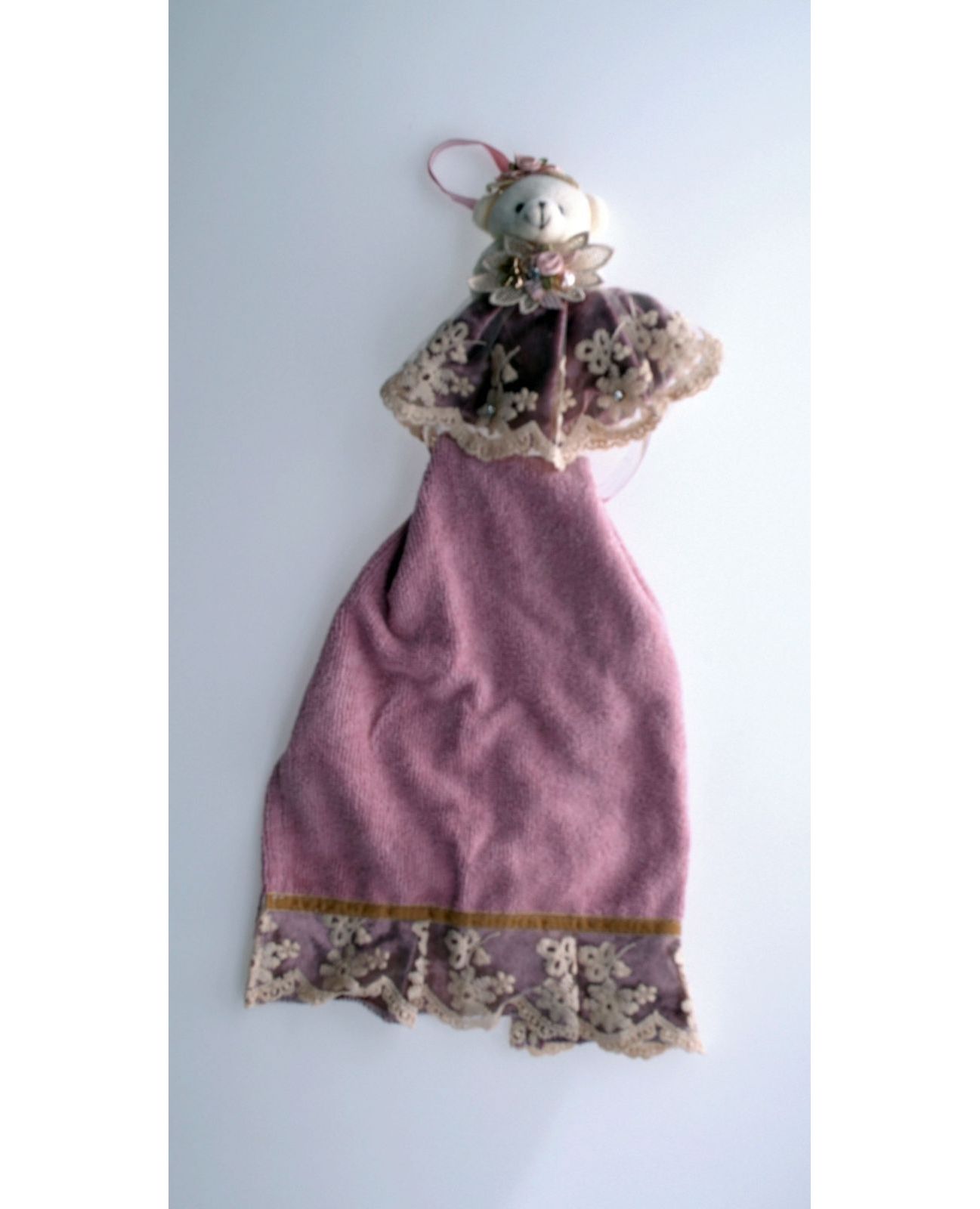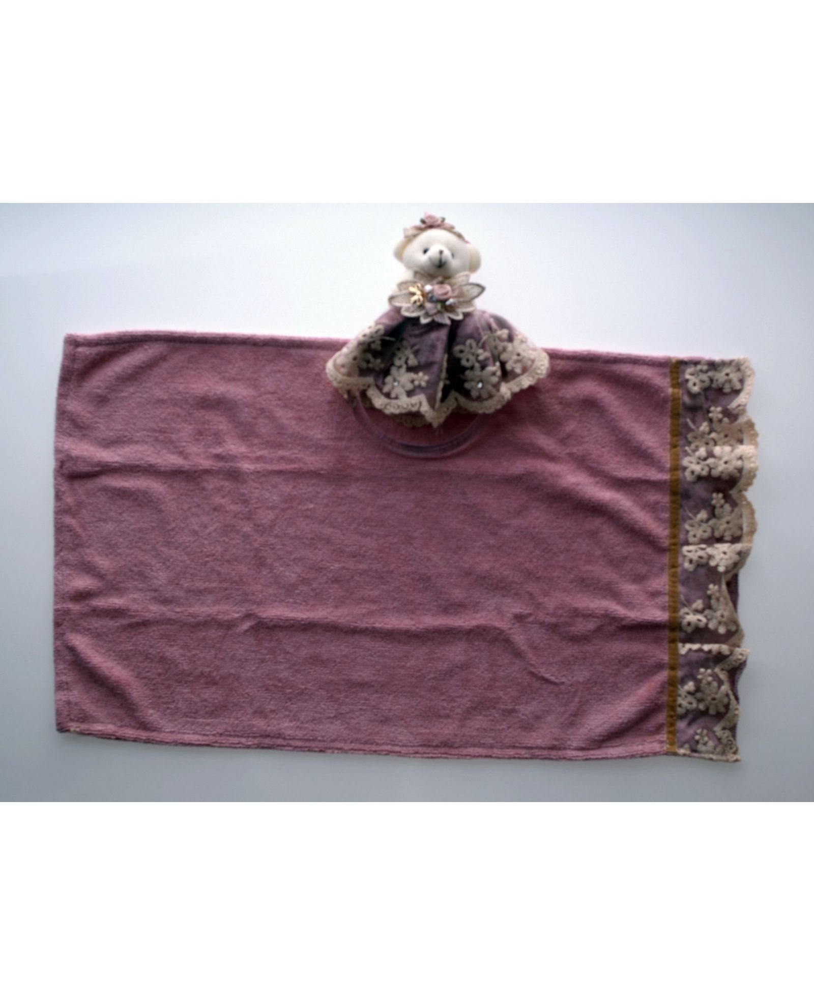 - Декор: велюровые и гипюровые вставки на полотенце.