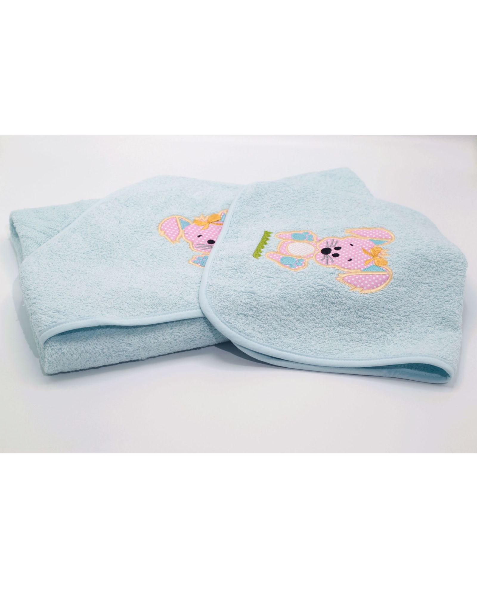 В состав этого набора входит полотенце-уголок размером 100х100 см и маленькое полотенце размером 30х50 см. Полотенце-уголок идеально подходит для купания новорожденных. Изготовлено из 100% хлопка, оно мягкое, приятное на ощупь и отлично впитывает влагу. Голубой цвет создаёт спокойную и уютную атмосферу для малыша. На уголке и полотенце вышит милый зайчонок, что придаёт изделию особенный шарм. Набор станет отличным дополнением для ухода за малышом.