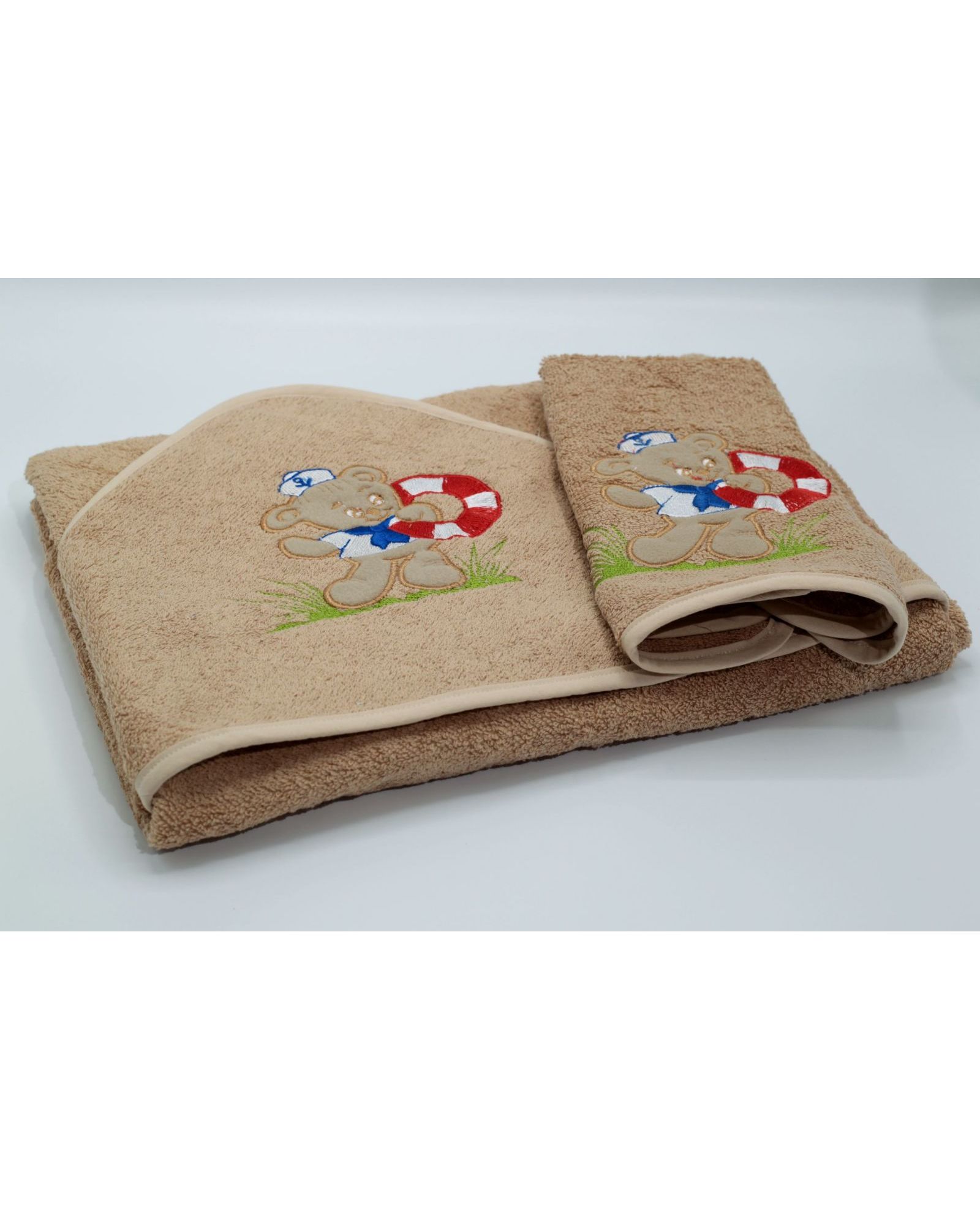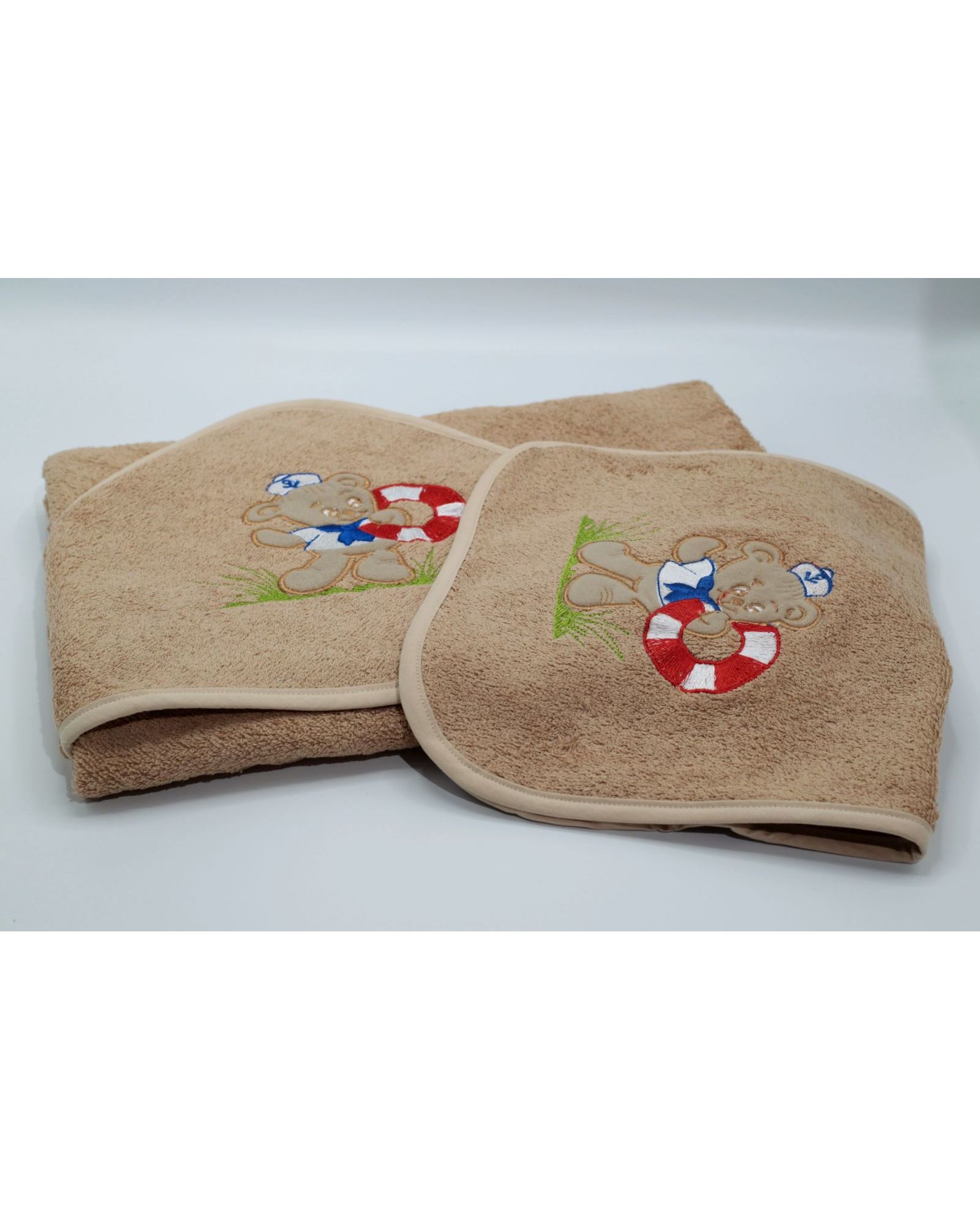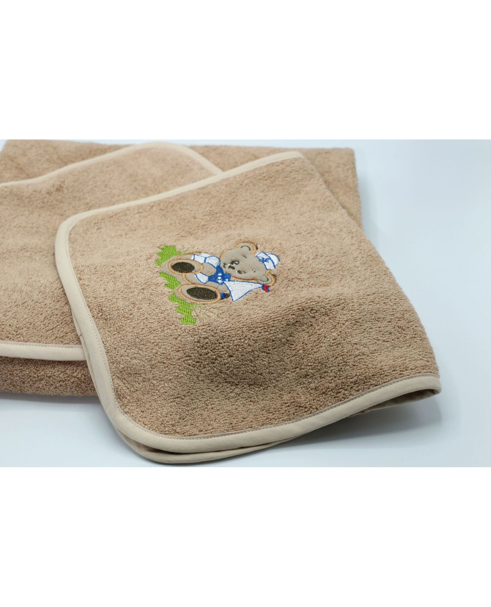 - Тип изделия: набор полотенец для новорожденных (полотенце-уголок и маленькое полотенце).