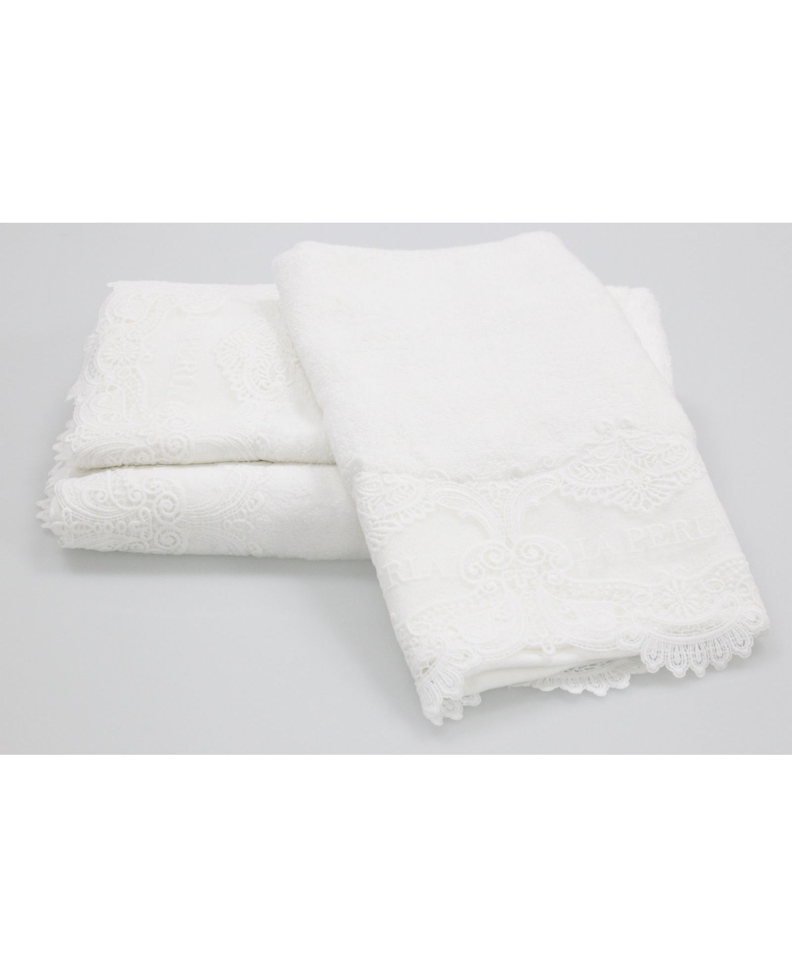 Набор полотенец LA PERLA с вышивкой – молочного цвета с кружевом