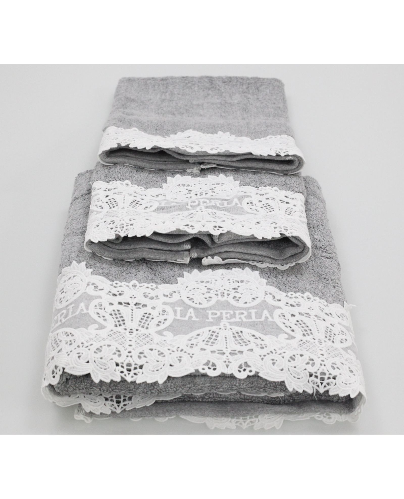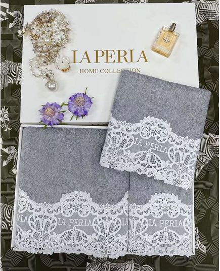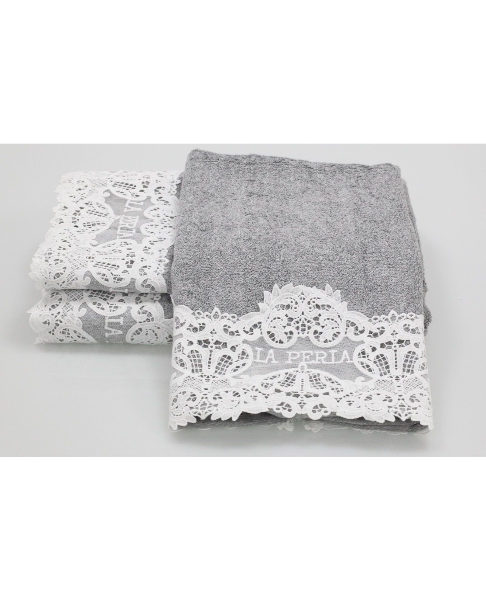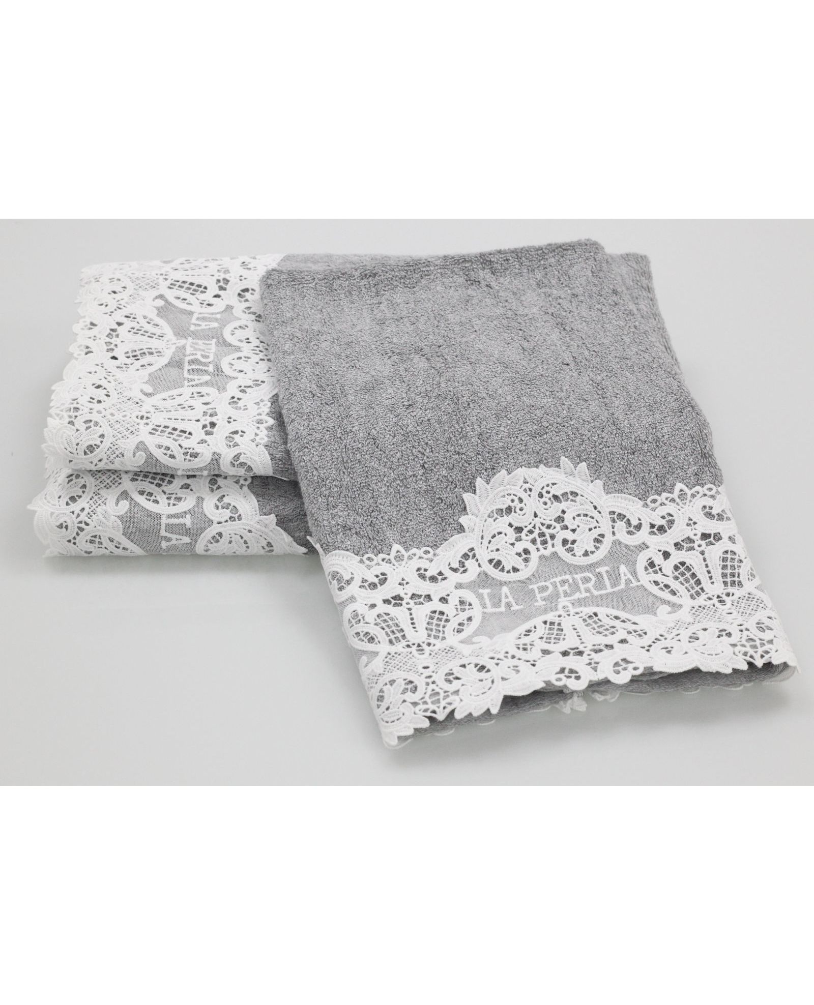 Набор полотенец LAPERLA с вышивкой – серого цвета с кружевом