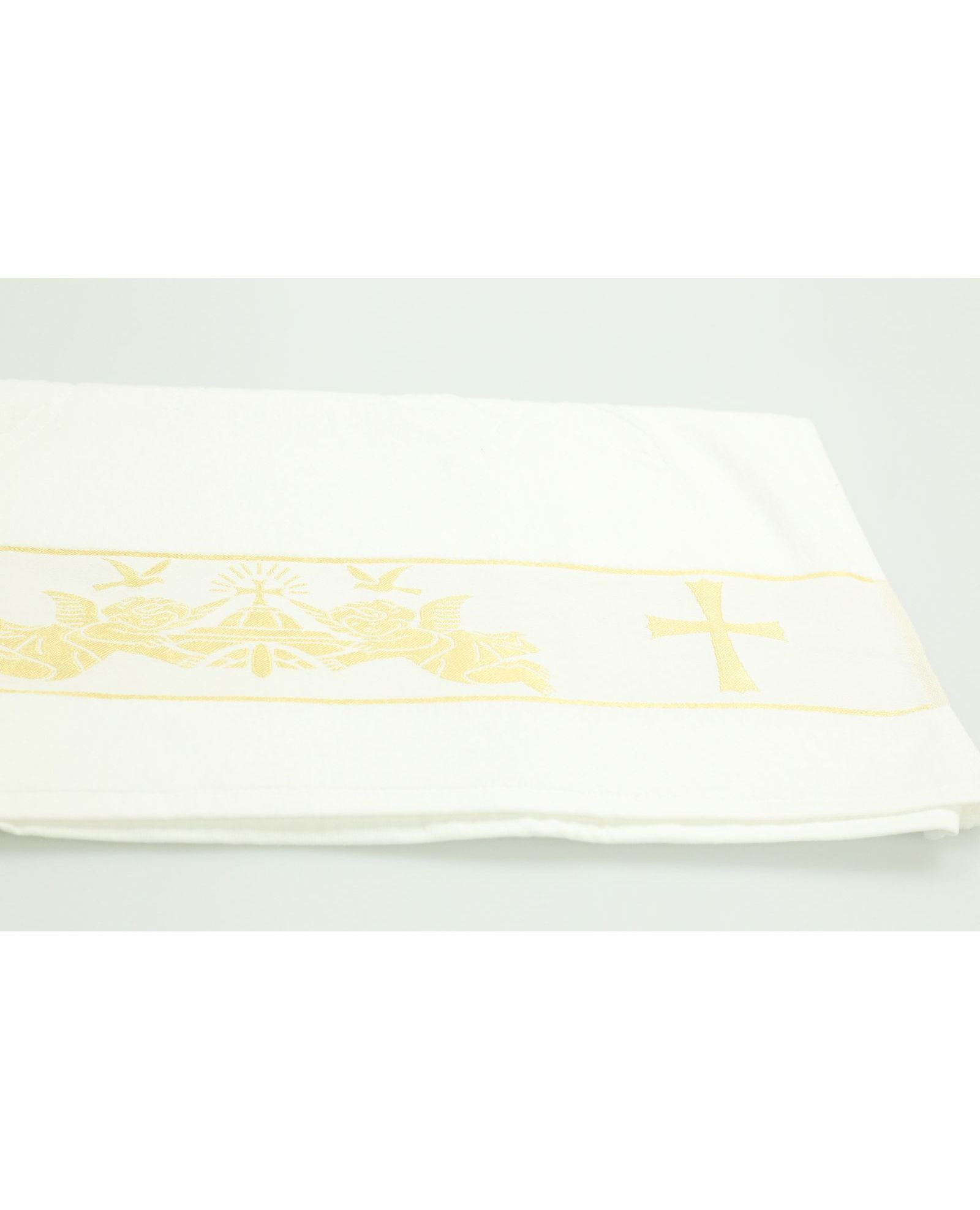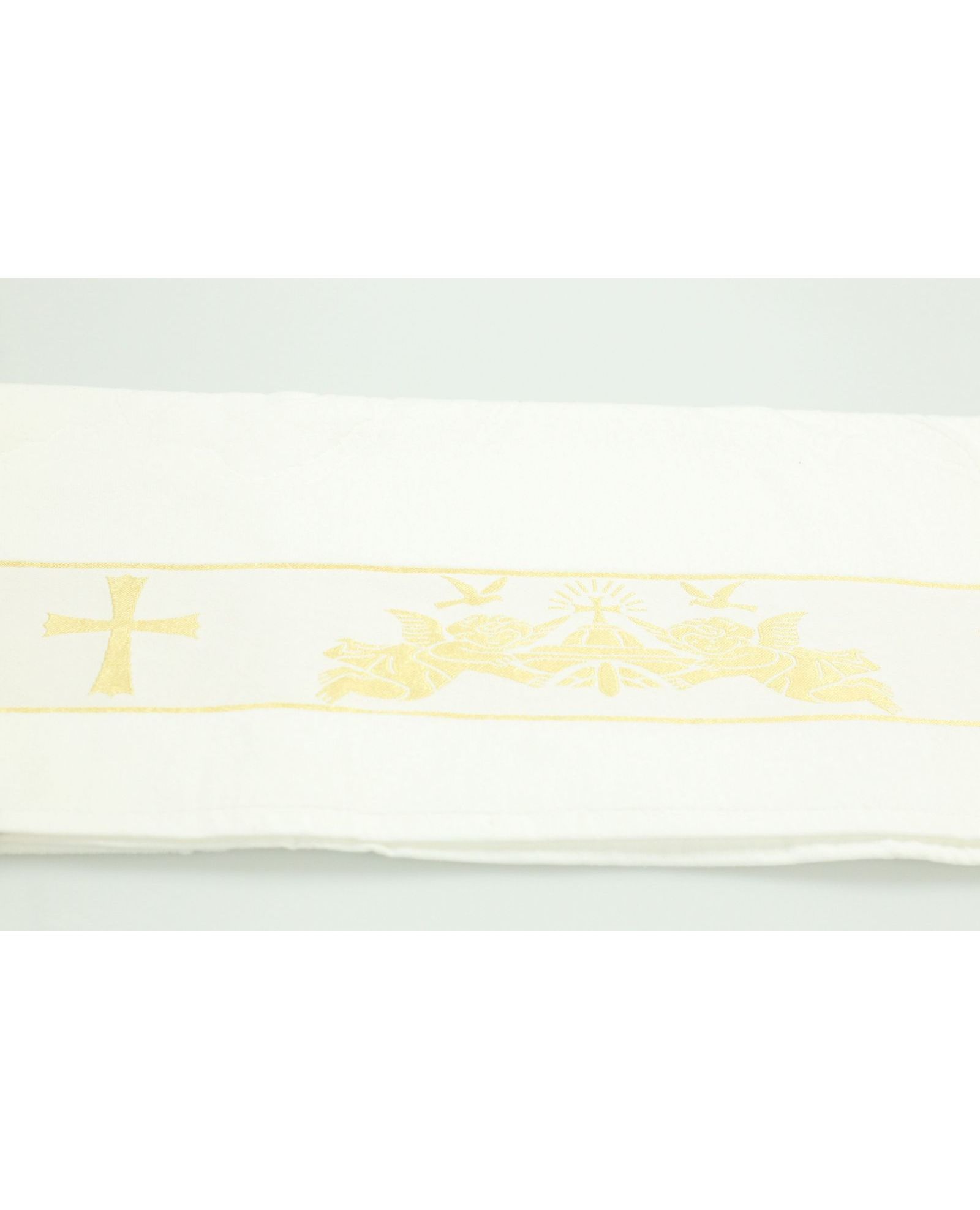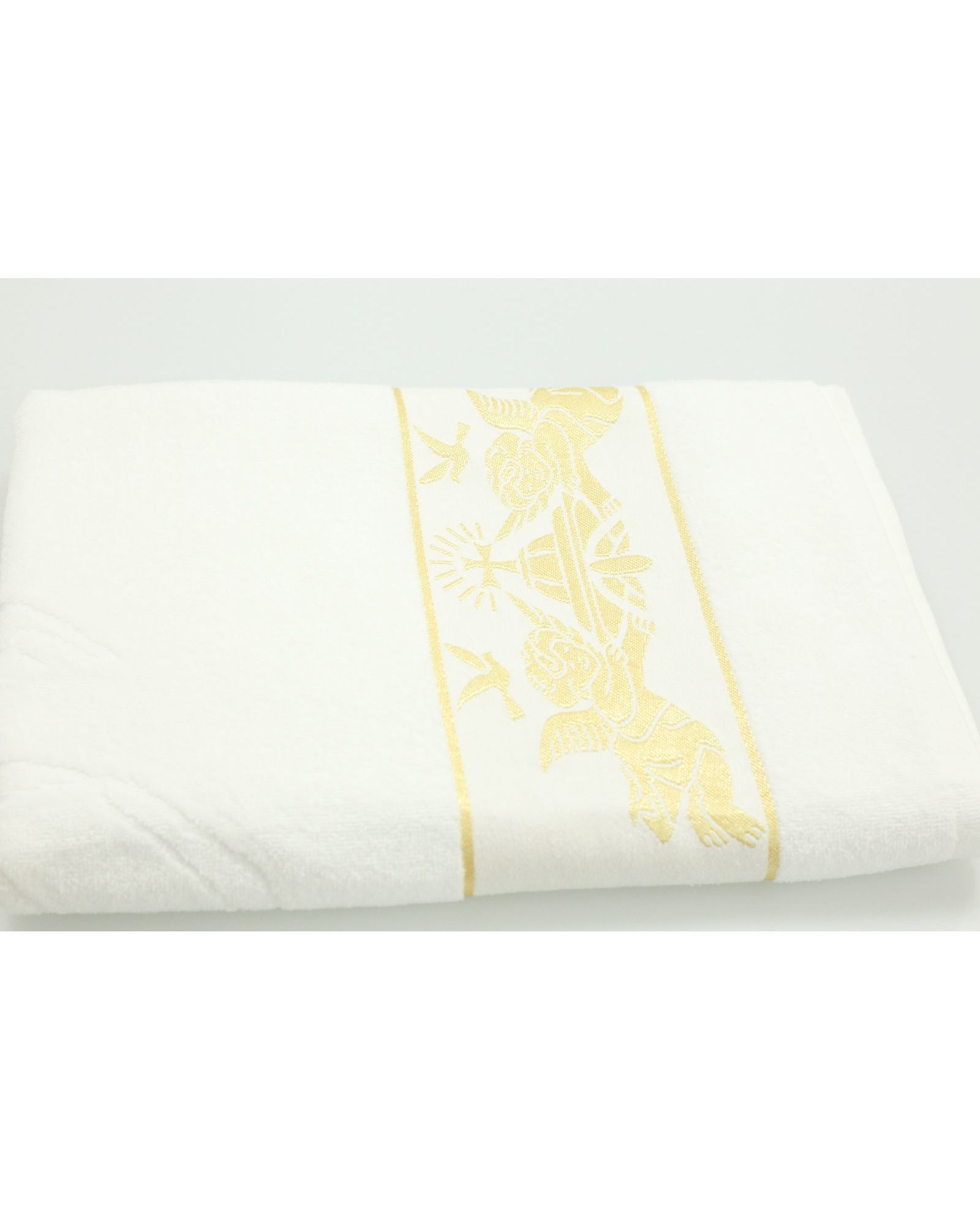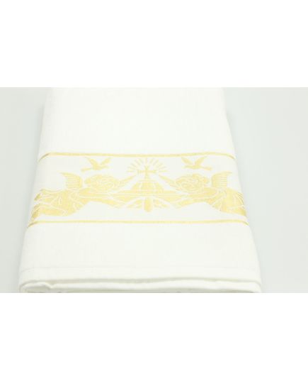 Это замечательное полотенце (крыжма) для крещения станет символом важного события в жизни вашего ребенка. Выполнено из высококачественного 100% хлопка, оно мягкое на ощупь и приятно для кожи. Полотенце имеет элегантный дизайн, белый цвет и изысканное изображение ангелов золотистого цвета по краю, что придает ему праздничный вид. Идеально подходит для использования во время обряда крещения, это полотенце станет незабываемым подарком и памятным атрибутом важного момента.