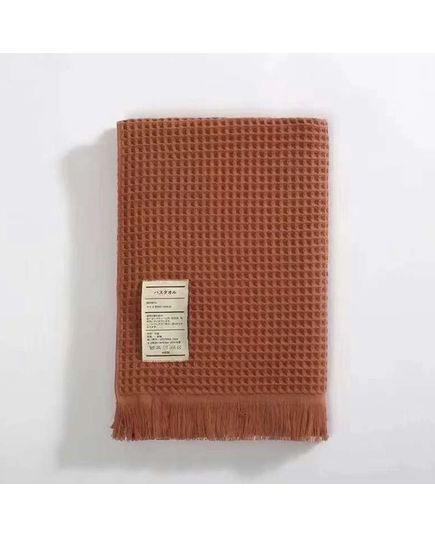 Это вафельное полотенце размером 90х180 см изготовлено из 100% хлопка. Его лёгкая вафельная текстура обеспечивает отличную впитываемость влаги и быстрое высыхание. Тонкий материал делает полотенце очень приятным на ощупь и комфортным в использовании. Бахрома по краям придаёт элегантности и делает полотенце стильным аксессуаром для вашей ванной комнаты.