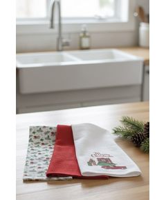 Набор кухонных полотенец с новогодним дизайном (3 шт.) Практичный и стильный набор кухонных полотенец станет ярким акцентом вашей кухни в праздничный сезон. Натуральный хлопок отлично впитывает влагу и быстро сохнет. Особенности: Новогодняя тематическая коллекция...
