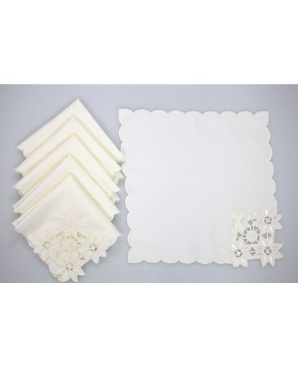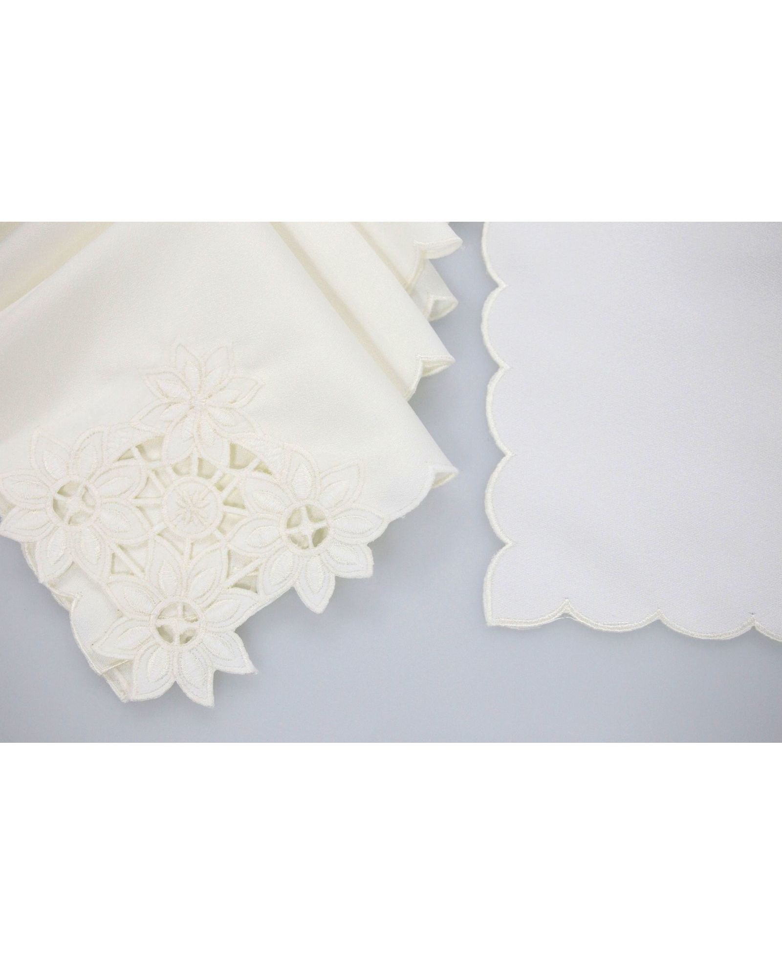 Салфетки в нежном молочном оттенке с ажурной вышивкой придадут вашему столу изысканности. Прекрасное решение как для праздничной, так и для повседневной сервировки.