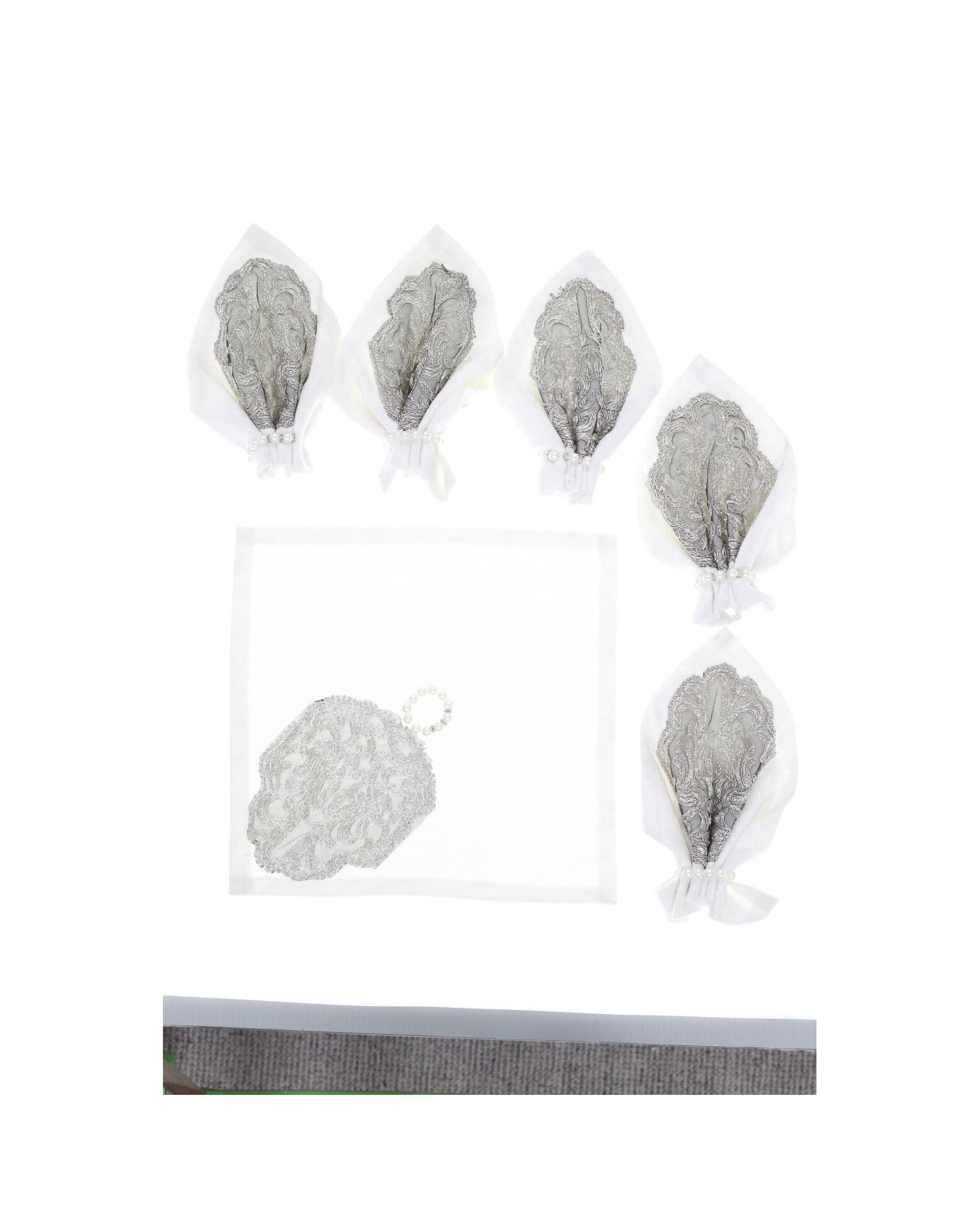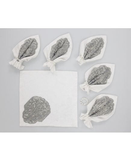 Комплект салфеток белого цвета с вышивкой металлизированной нитью