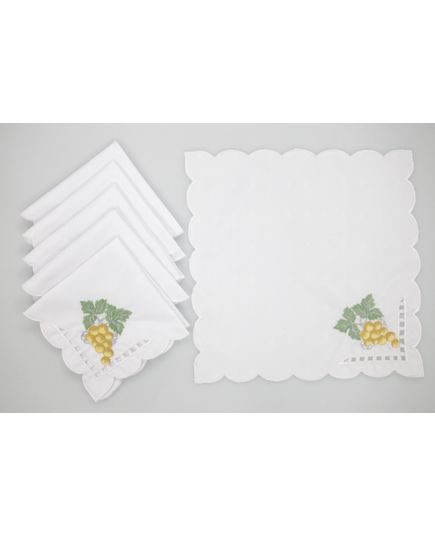 Набор салфеток 28×28 см молочного цвета с вышивкой винограда – утончённость для вашего стола