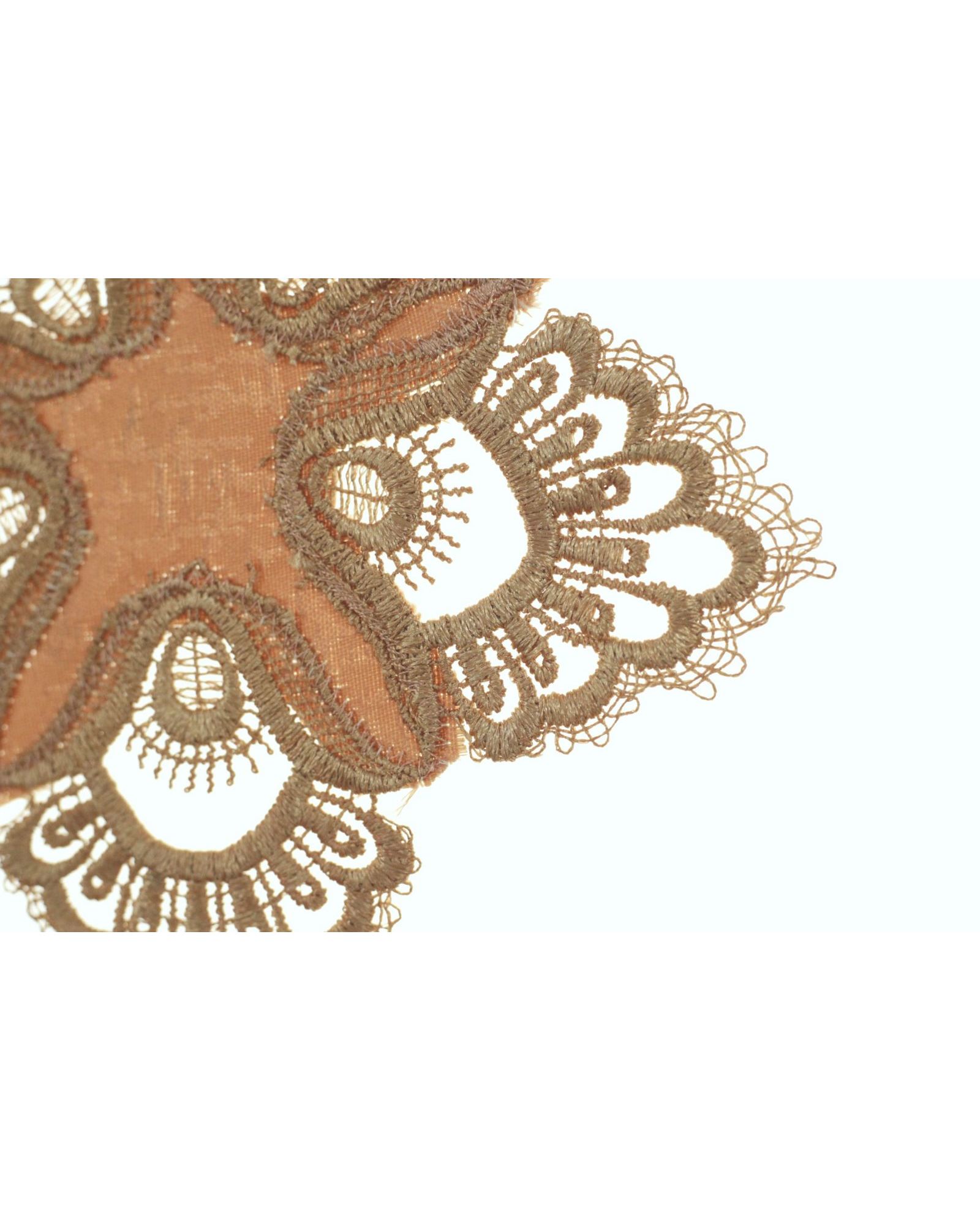Терракотовая салфетка с ажурным краем и необычной пятиугольной формой станет стильным акцентом в сервировке стола. Материал из 100% полиэстера обеспечивает прочность, лёгкость в уходе и долговечность.