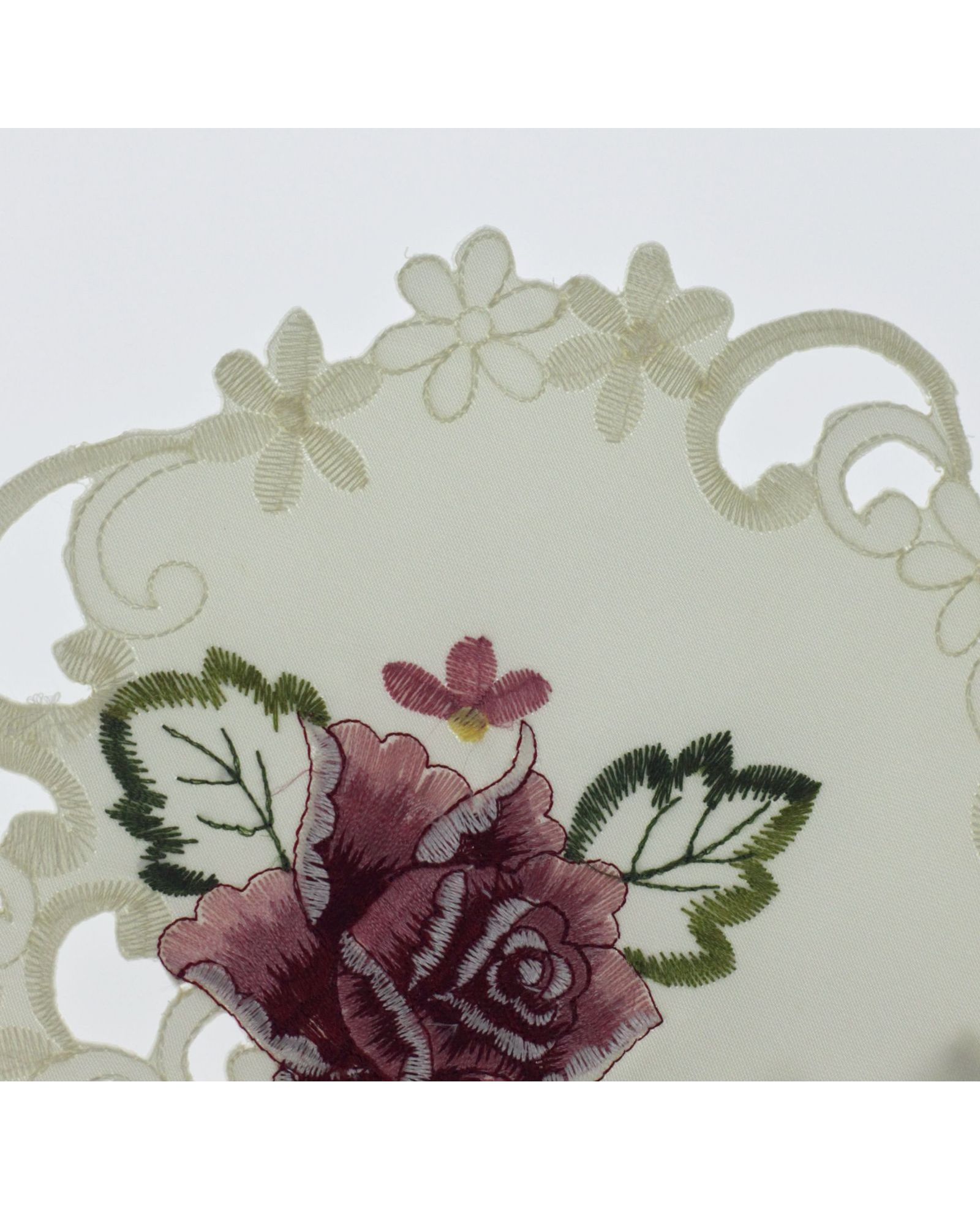 Элегантная салфетка молочного цвета станет прекрасным элементом декора на любом столе. Утончённая вышивка и ажурная отделка краёв придают ей благородный и изысканный вид. Салфетка выполнена из прочного и лёгкого в уходе материала, что делает её практичным выбором для ежедневного или праздничного использования.