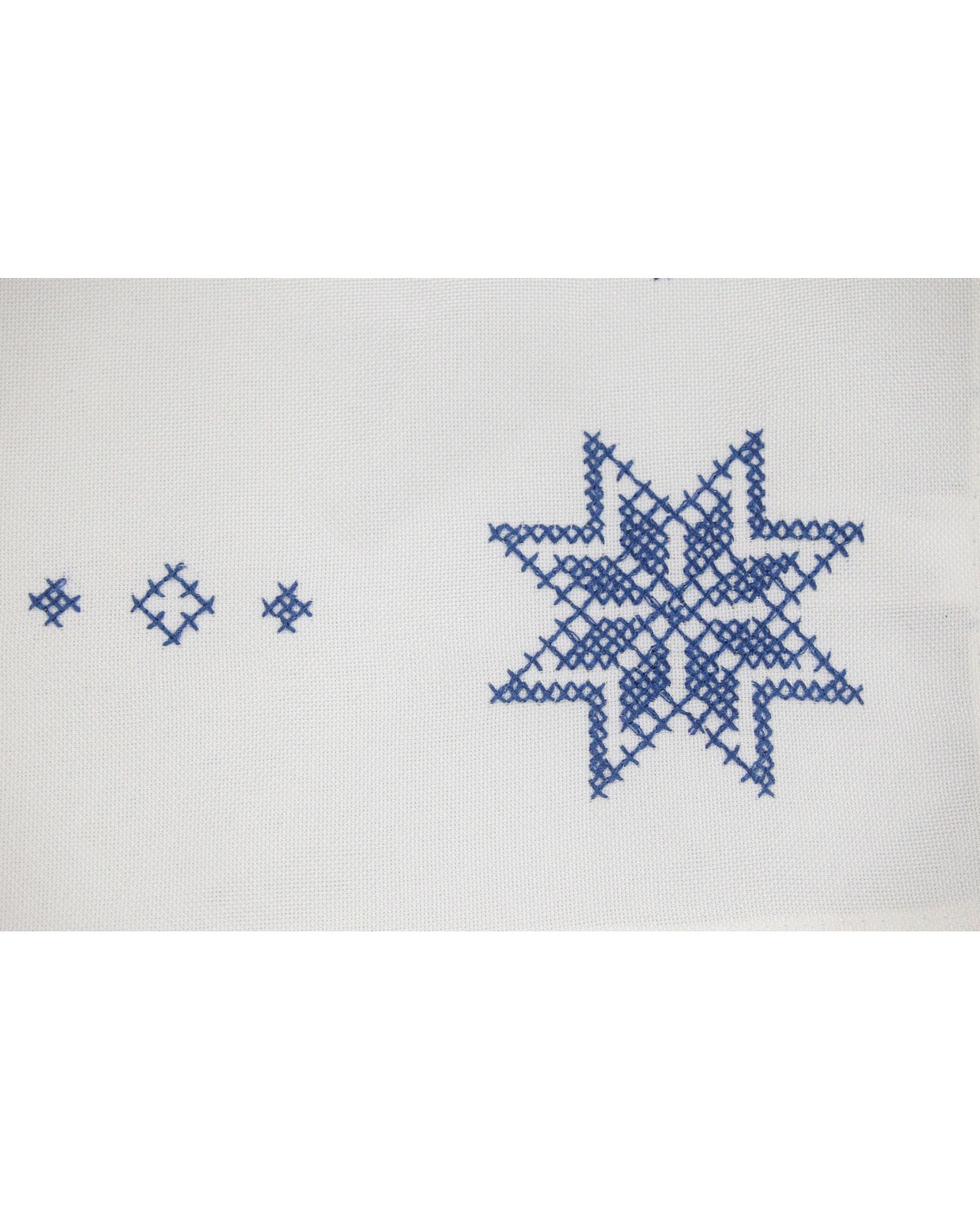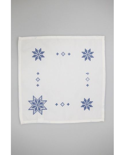 Салфетка 30х30 см белого цвета с голубой вышивкой, квадратная