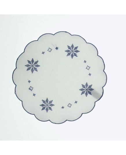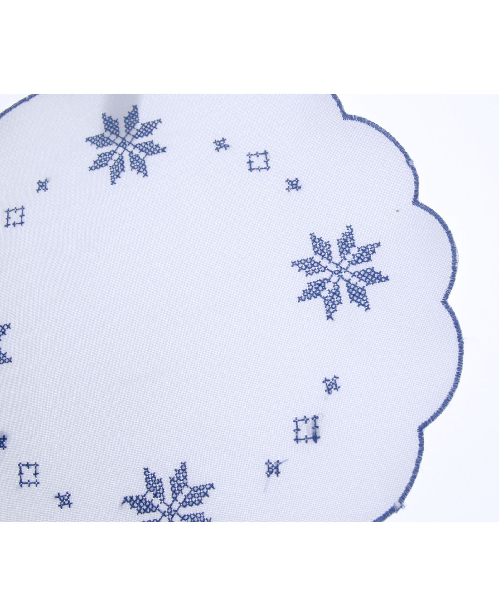 Салфетка белого цвета с голубой вышивкой и волнистыми краями