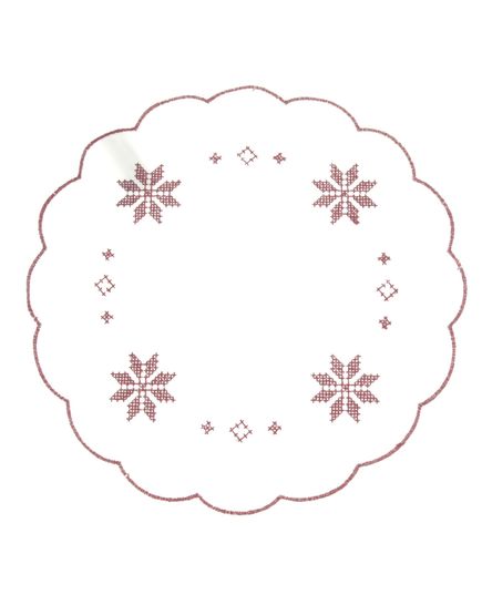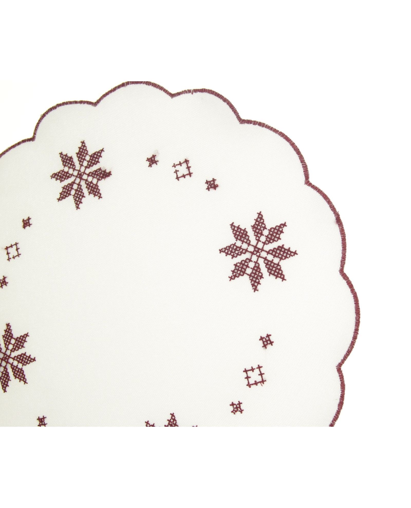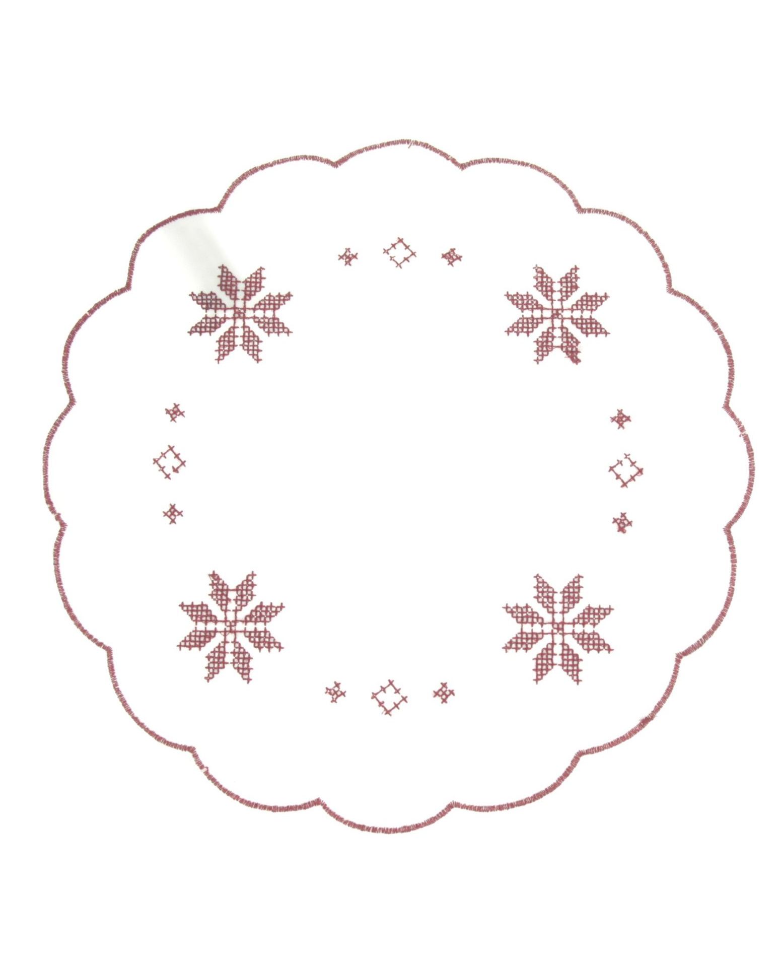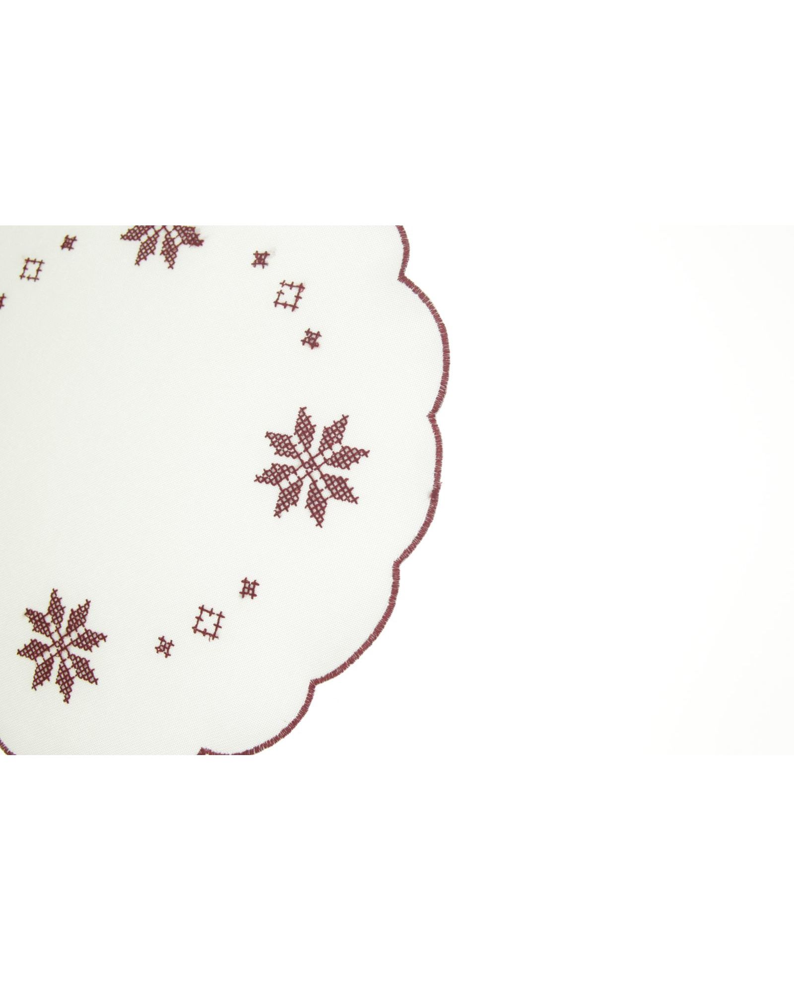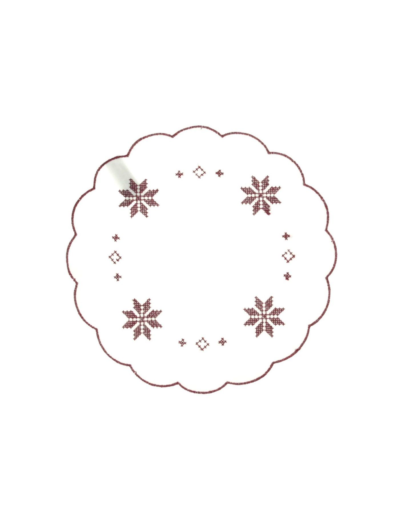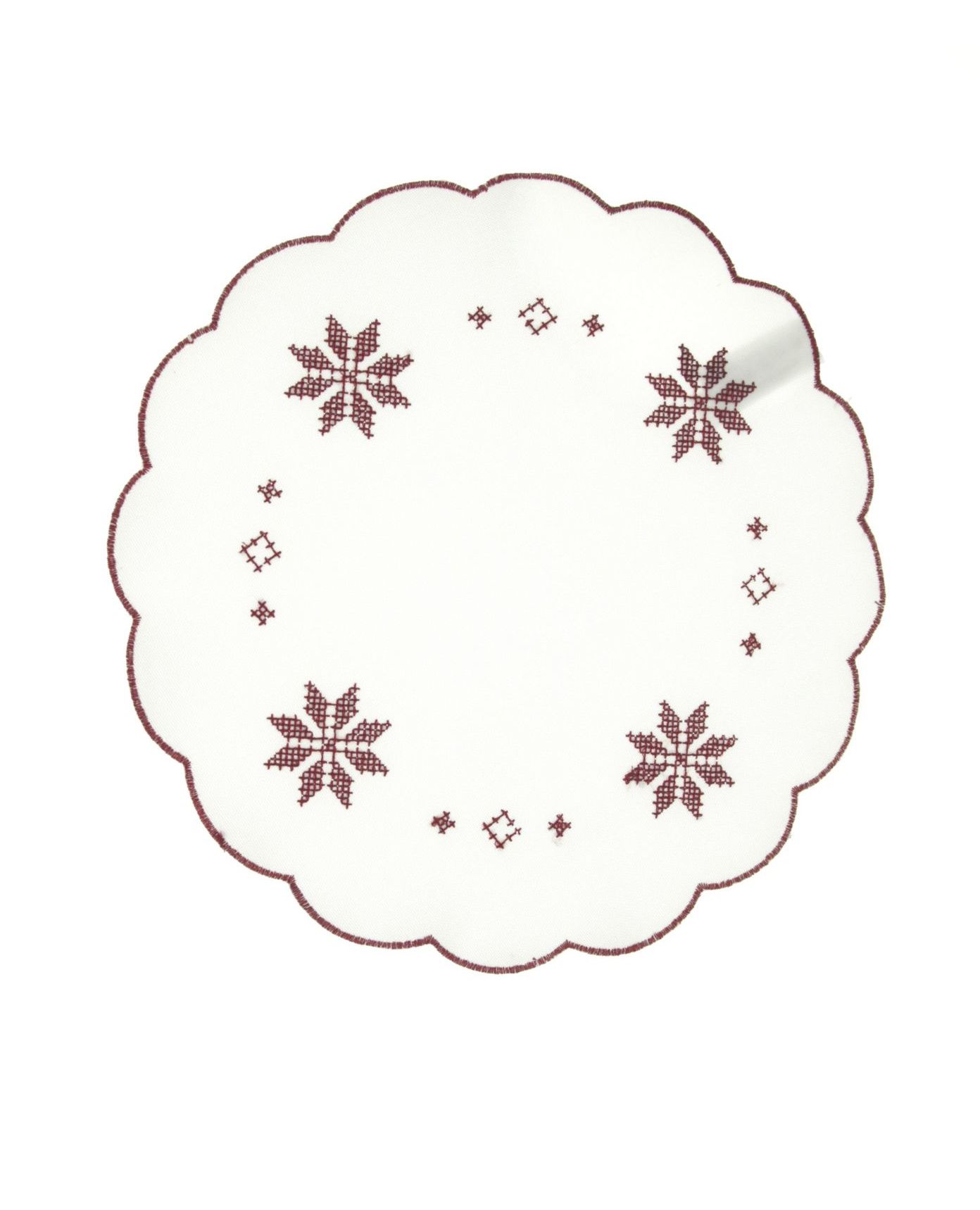 Салфетка белого цвета с красной вышивкой и волнистыми краями