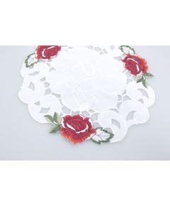 Ажурная салфетка в форме цветка бордового цвета Салфетка размером 30х30 см в насыщенном бордовом цвете выполнена в оригинальной форме цветка. Украшенная изящной вышивкой и ажурной отделкой, она станет элегантным акцентом в декоре вашего стола. Материал — 100% полиэстер —...