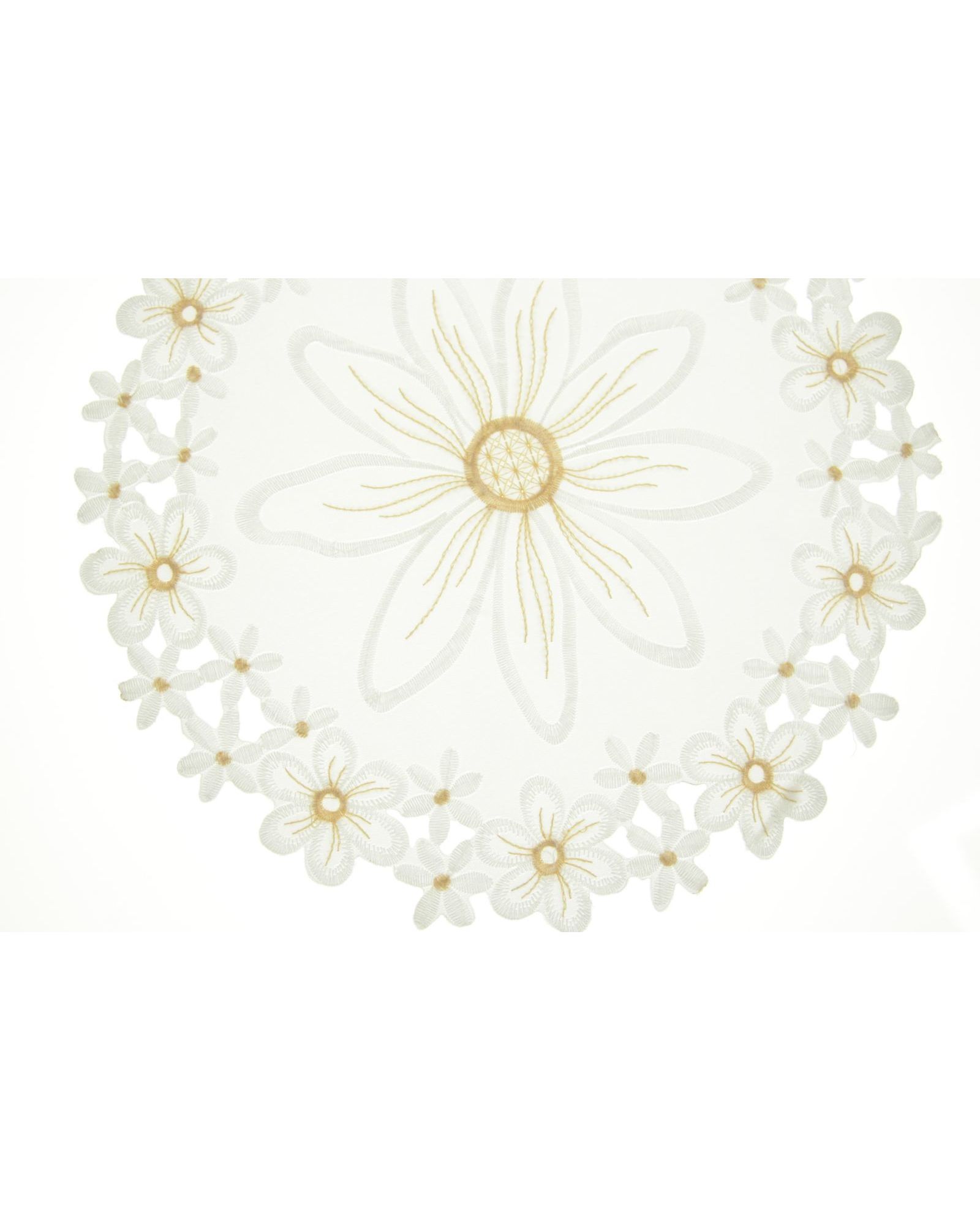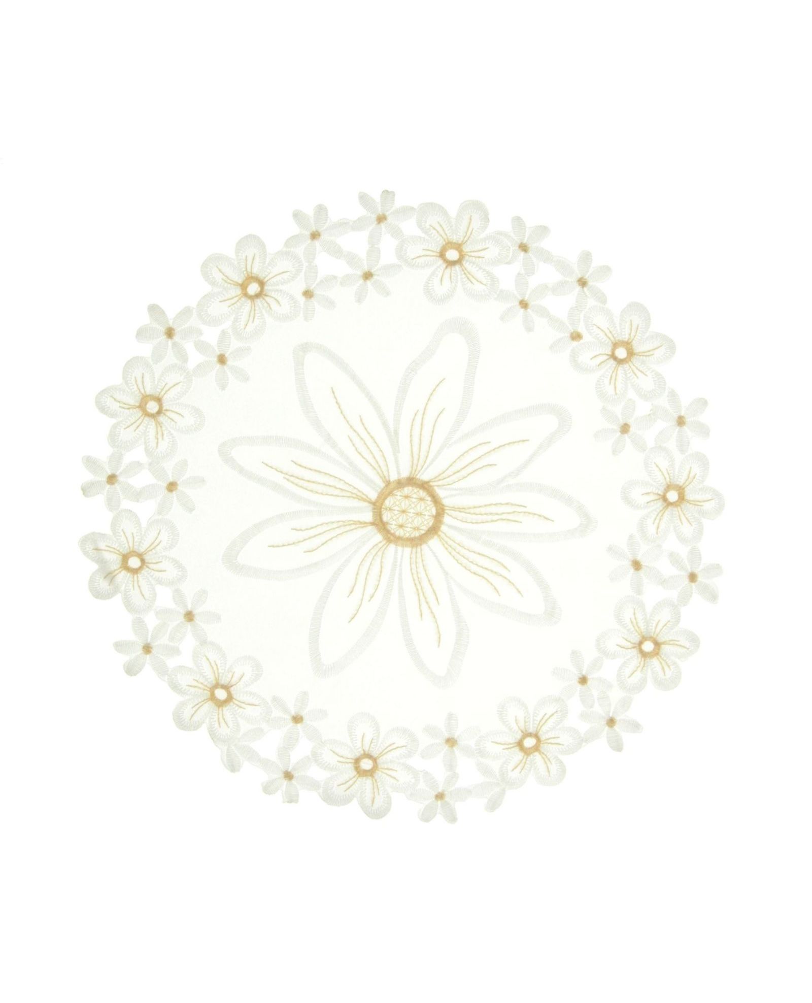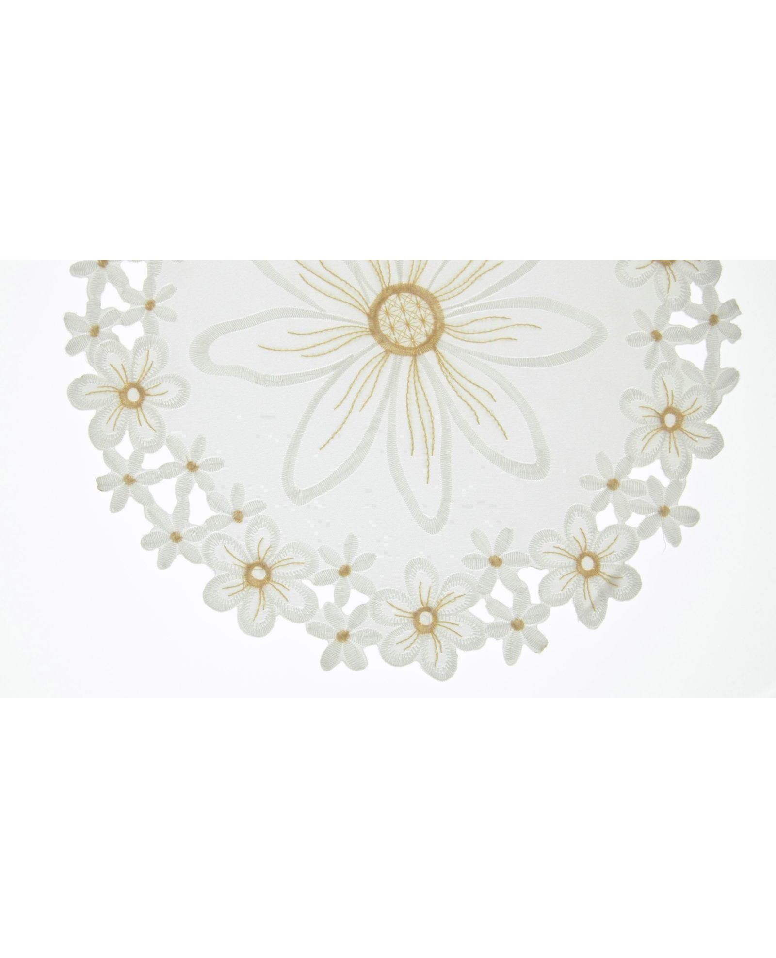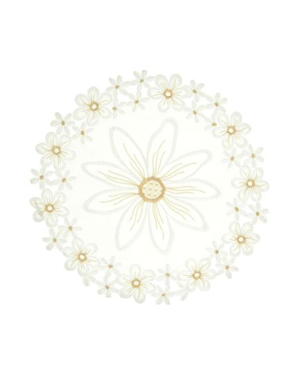 Салфетка белого цвета с волнистыми краями и вышивкой
