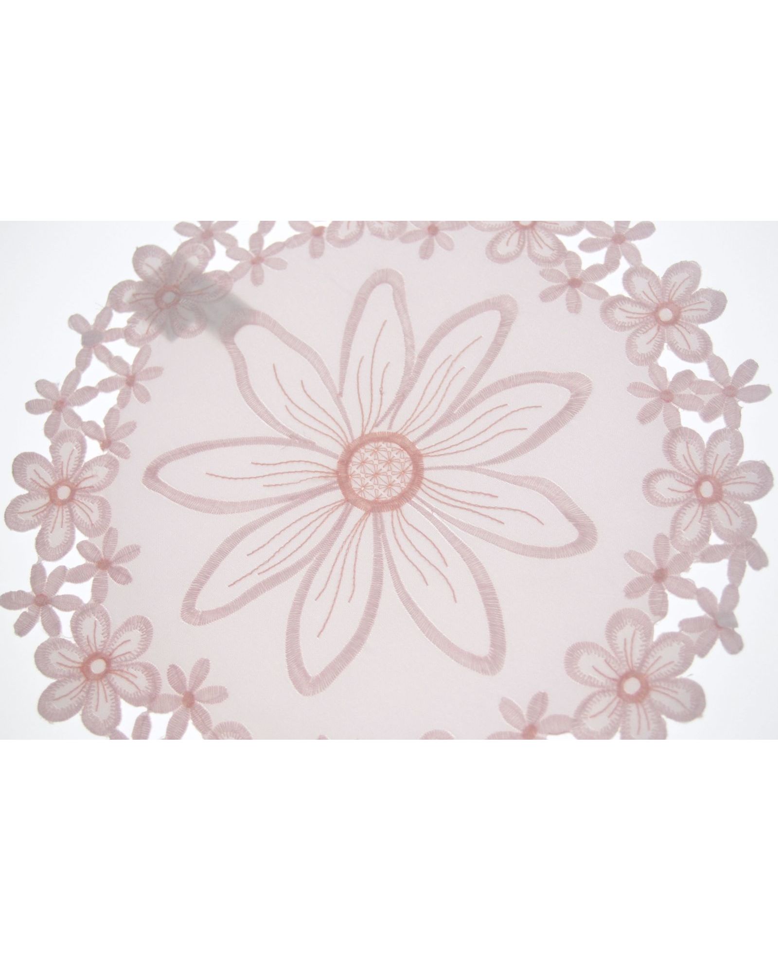 Салфетка розового цвета с волнистыми краями и вышивкой