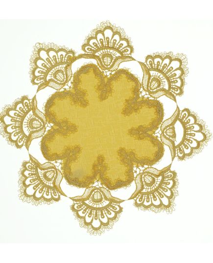 Круглая салфетка 30х30 см золотистого цвета с кружевом — изысканный элемент декора для праздничной сервировки. Элегантный блеск ткани и тонкое кружево создают атмосферу роскоши и тепла за вашим столом. Полиэстер гарантирует лёгкий уход и долговечность формы.