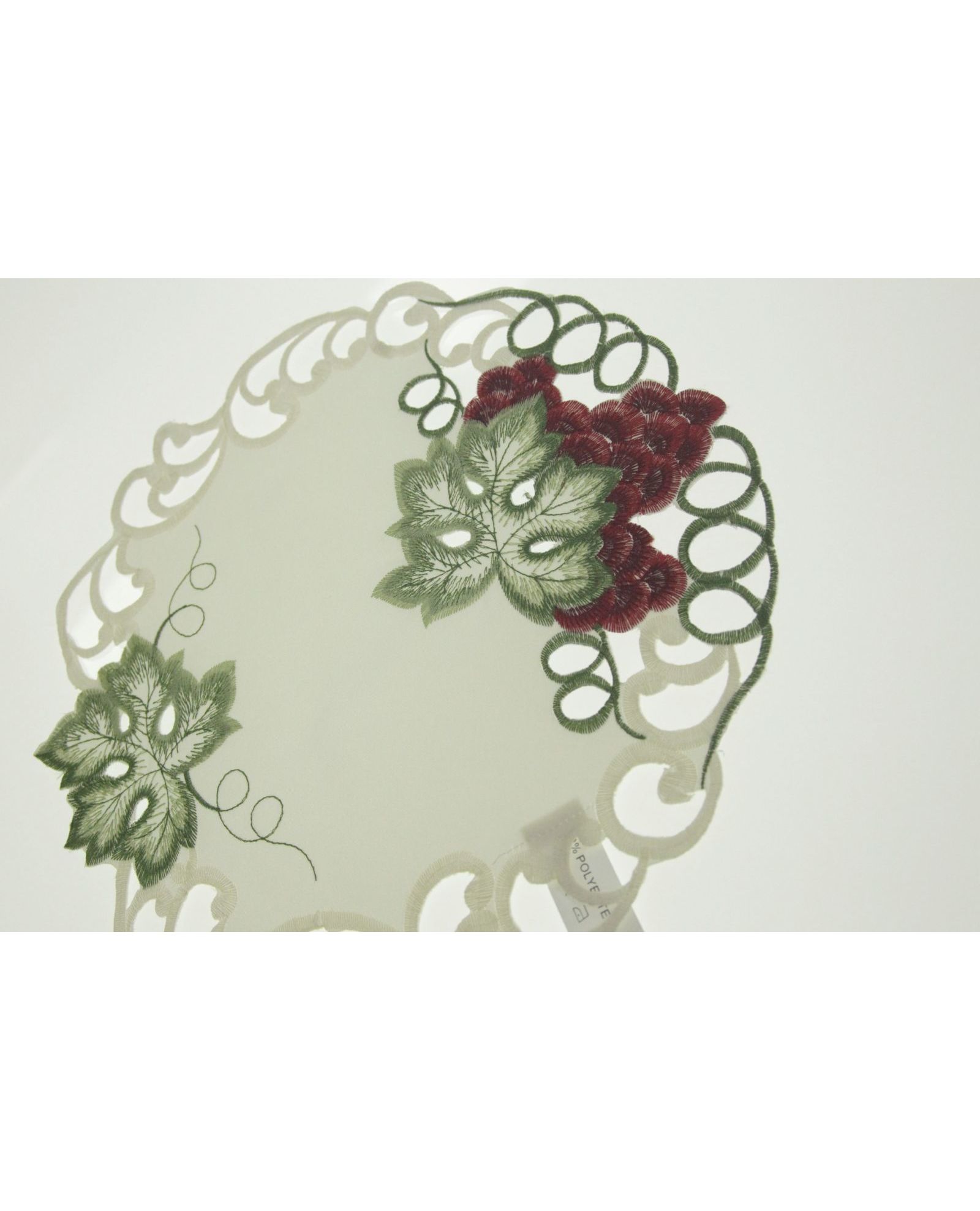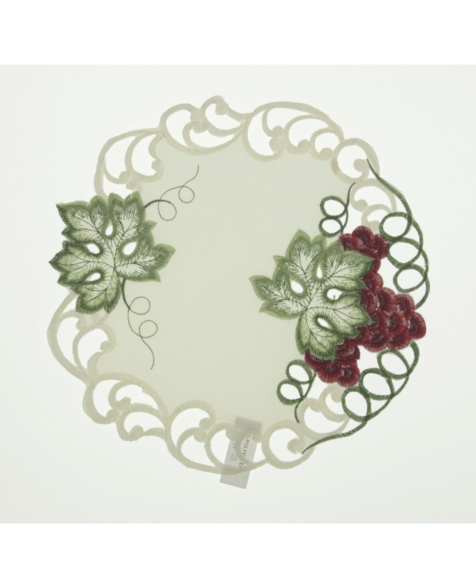 Салфетка молочного цвета с вышивкой винограда и ажуром 30х30 см, круглая