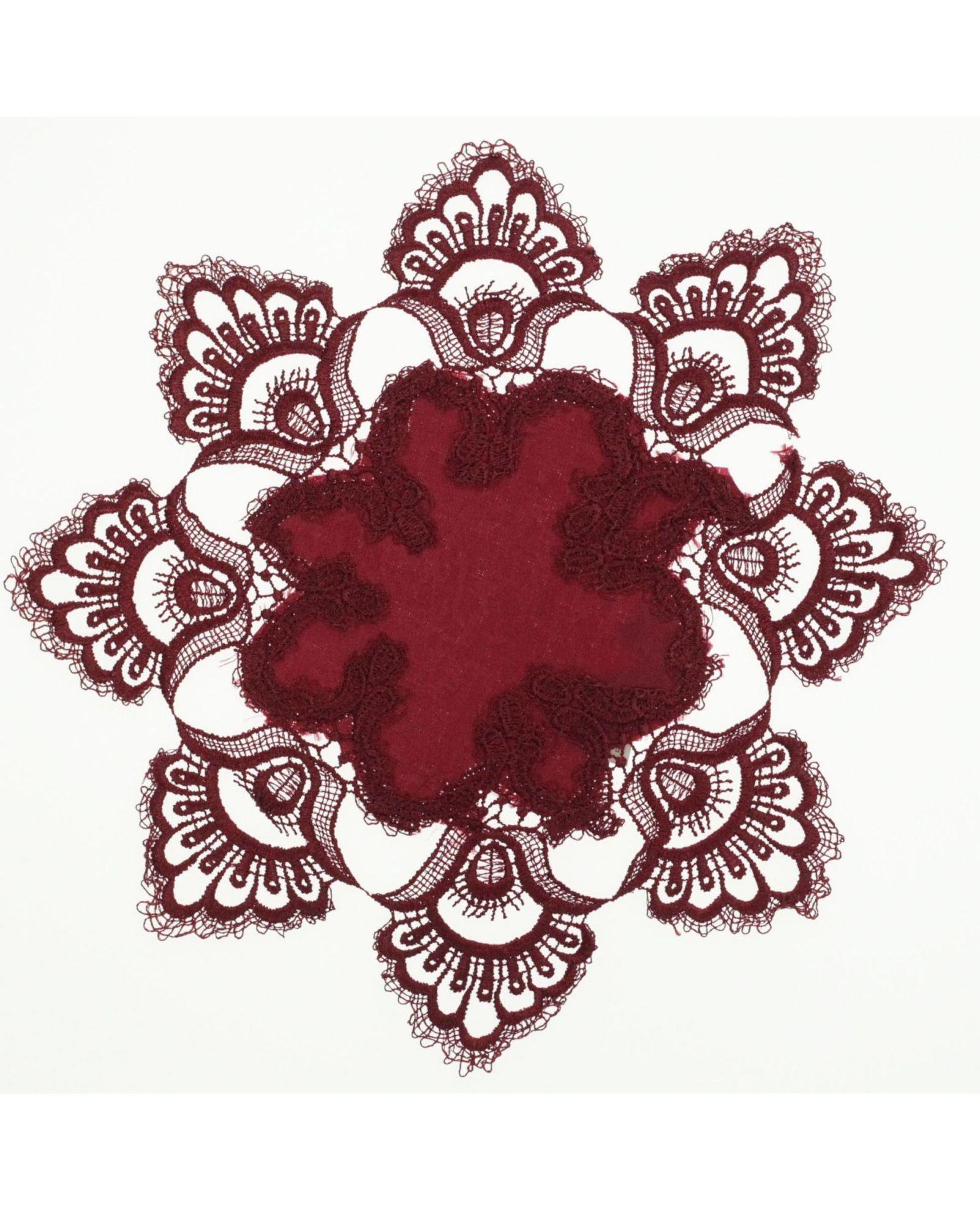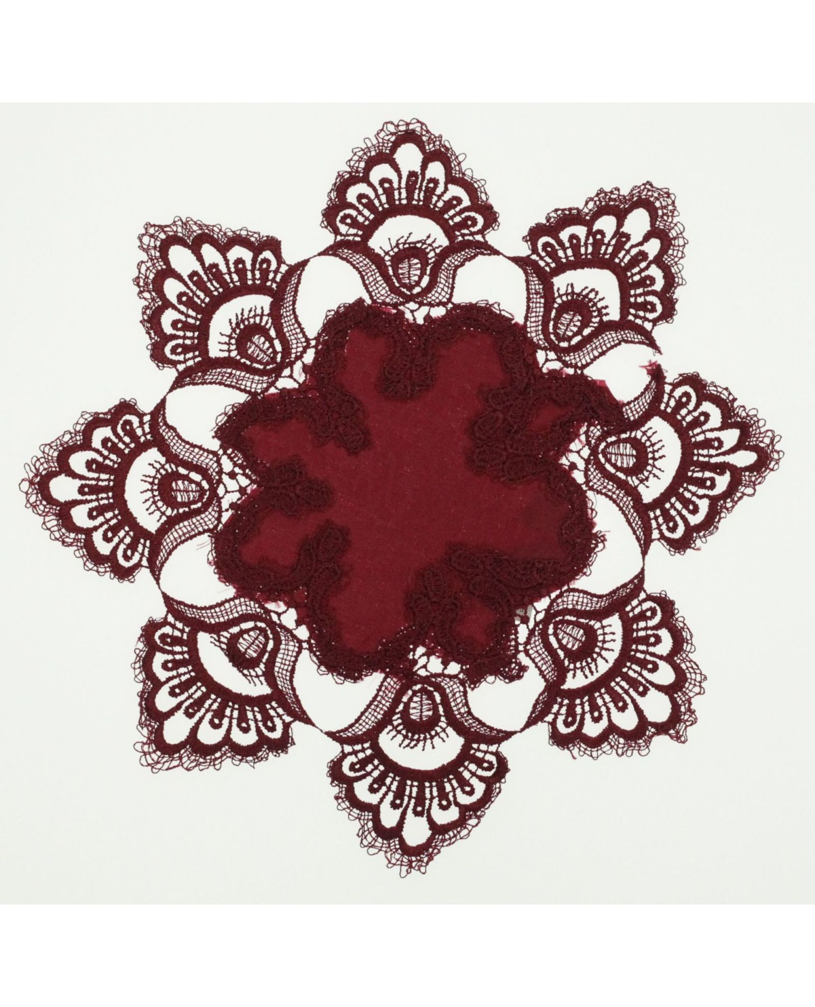 Круглая салфетка 30х30 см бордового цвета с кружевом — изысканный акцент для вашего стола. Глубокий бордовый оттенок придаёт элегантность, а кружевная отделка добавляет утончённости и стиля. Подходит как для праздничной сервировки, так и для повседневного использования.