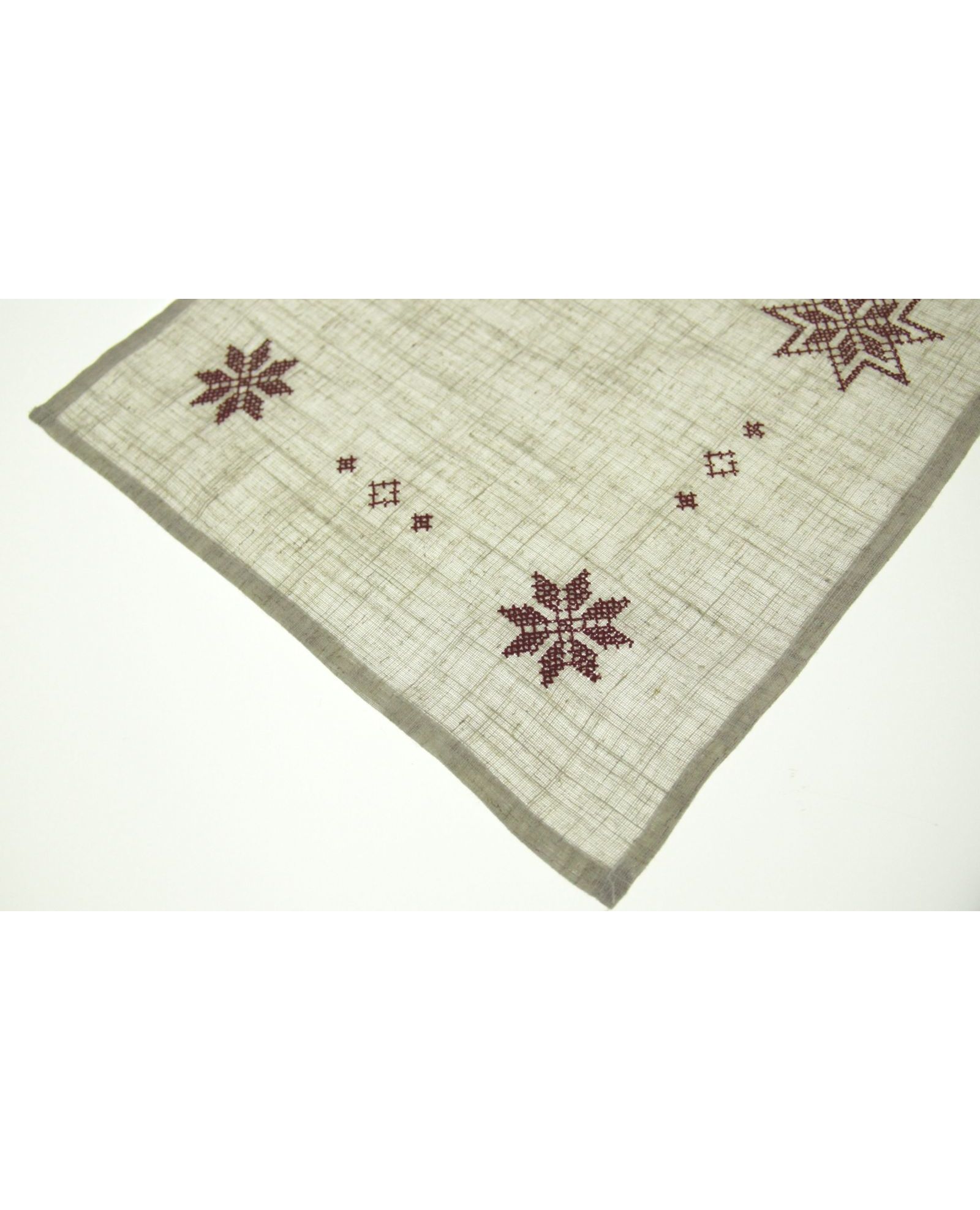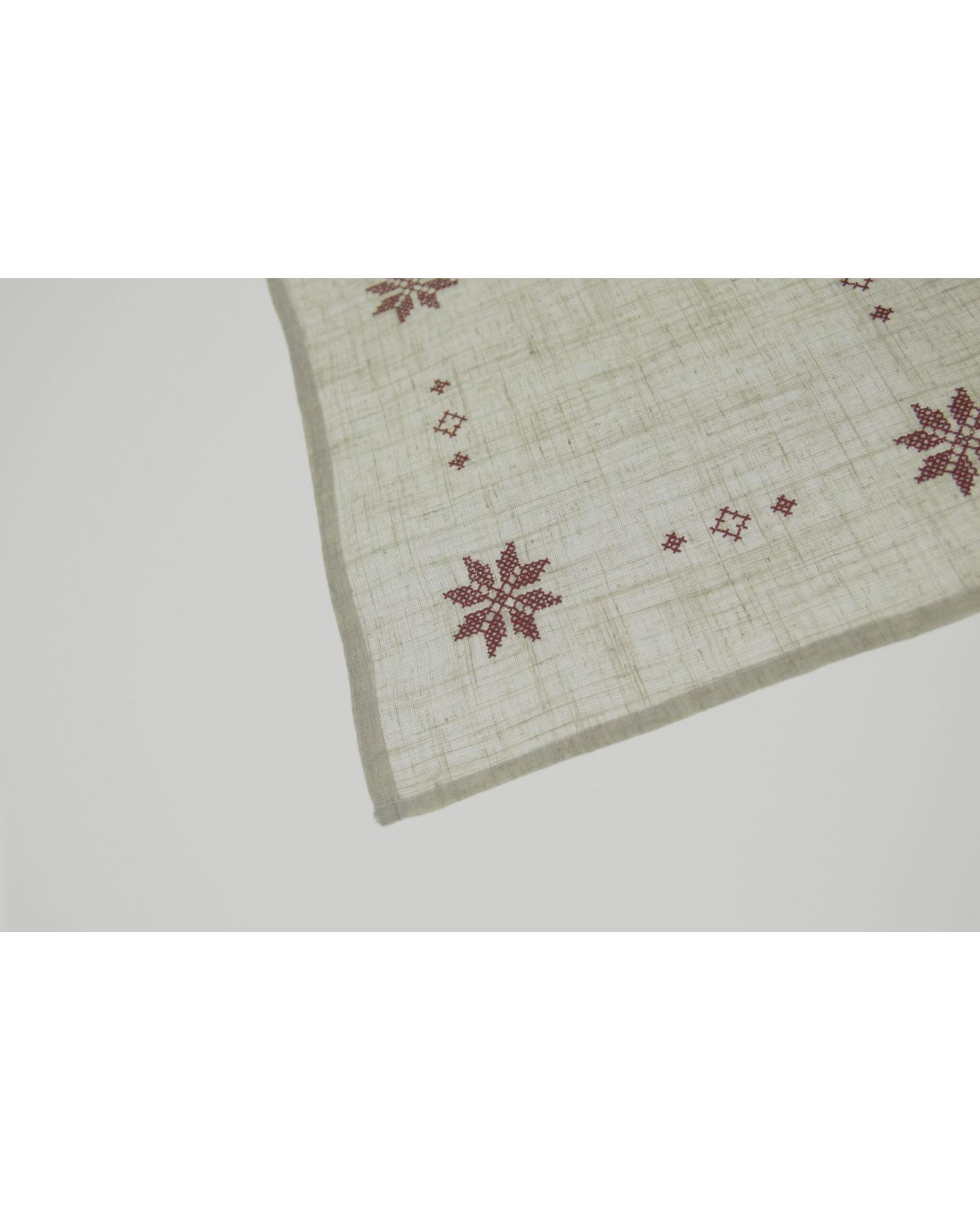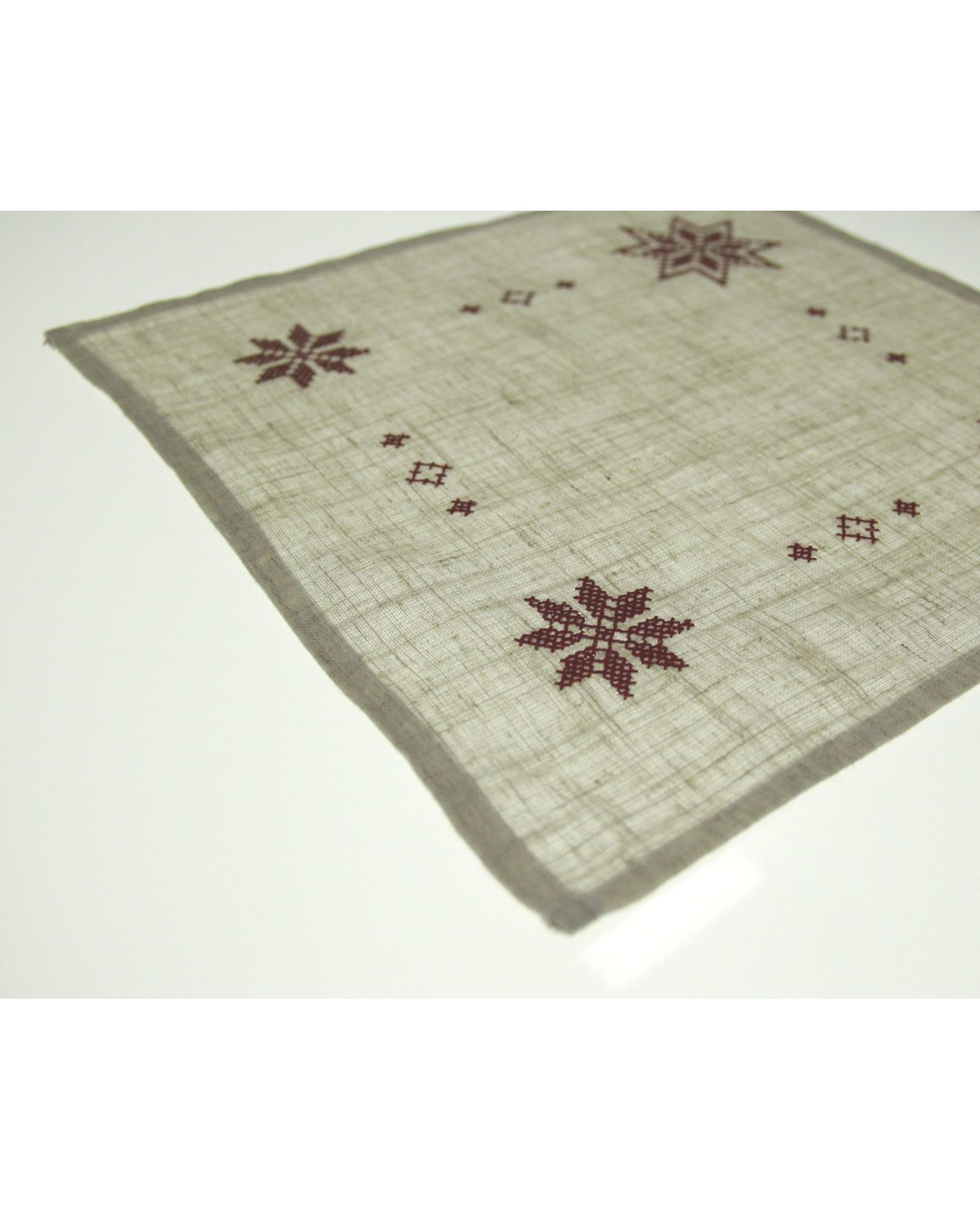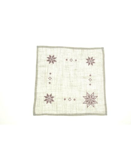 Салфетка 30х30 см бежевого цвета с бордовой вышивкой, квадратная