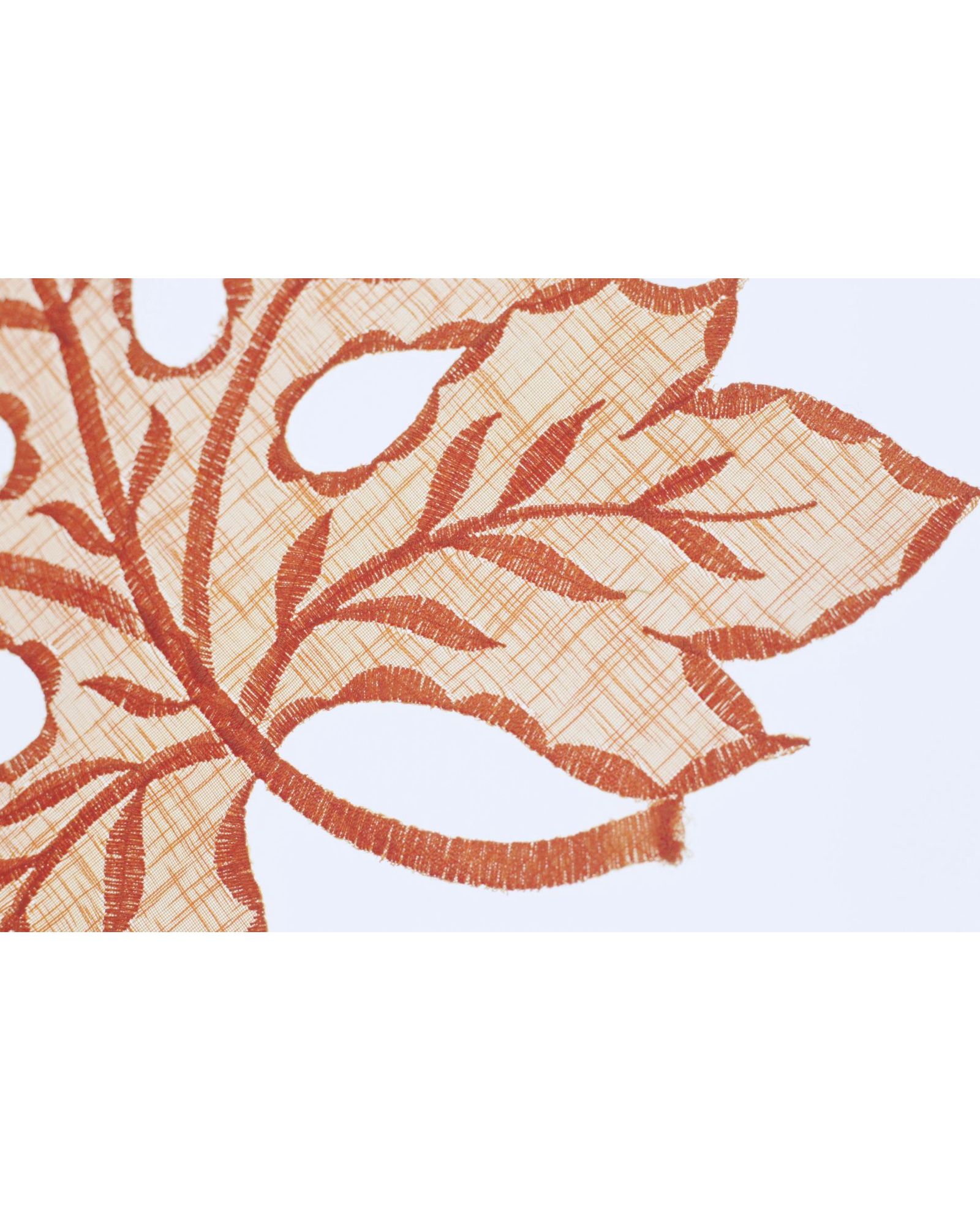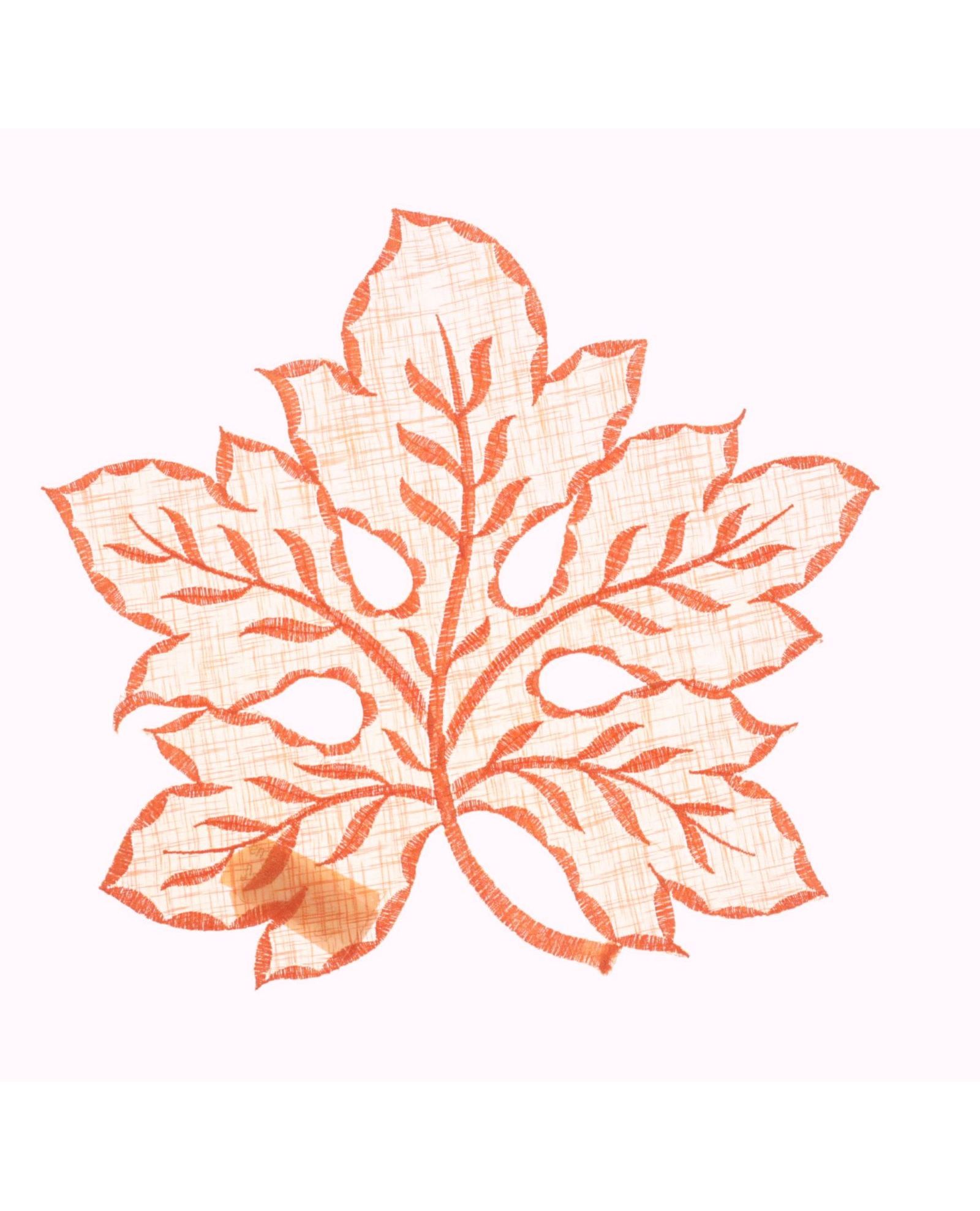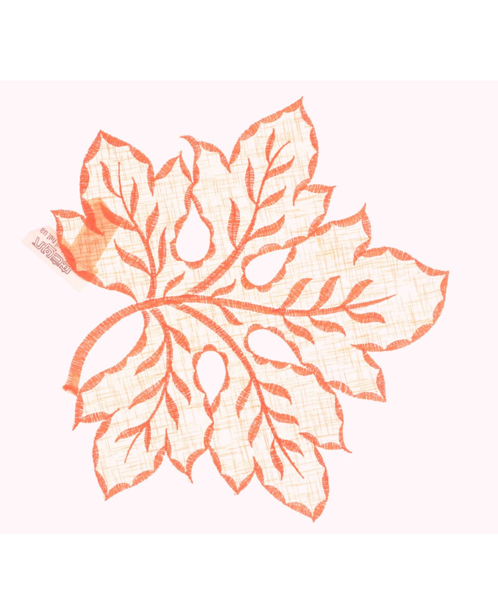 Салфетка в форме листочка оранжевого цвета с вышивкой, 30×30 см