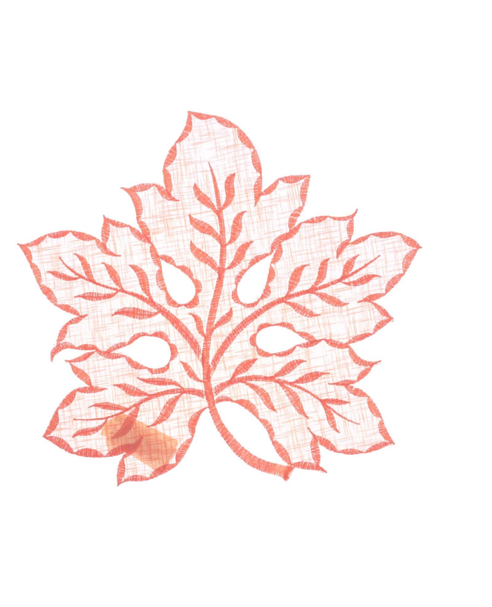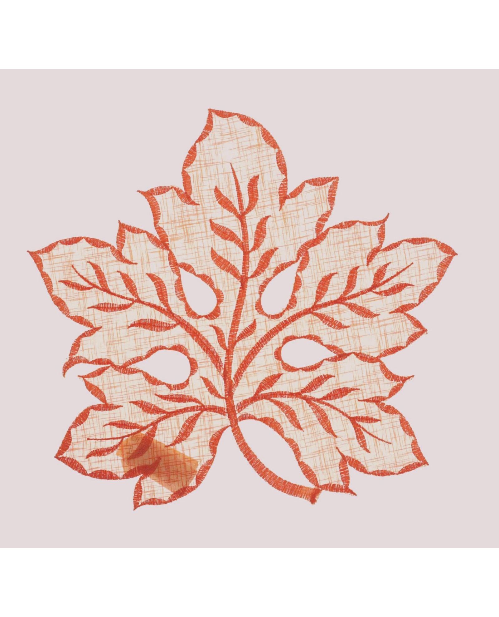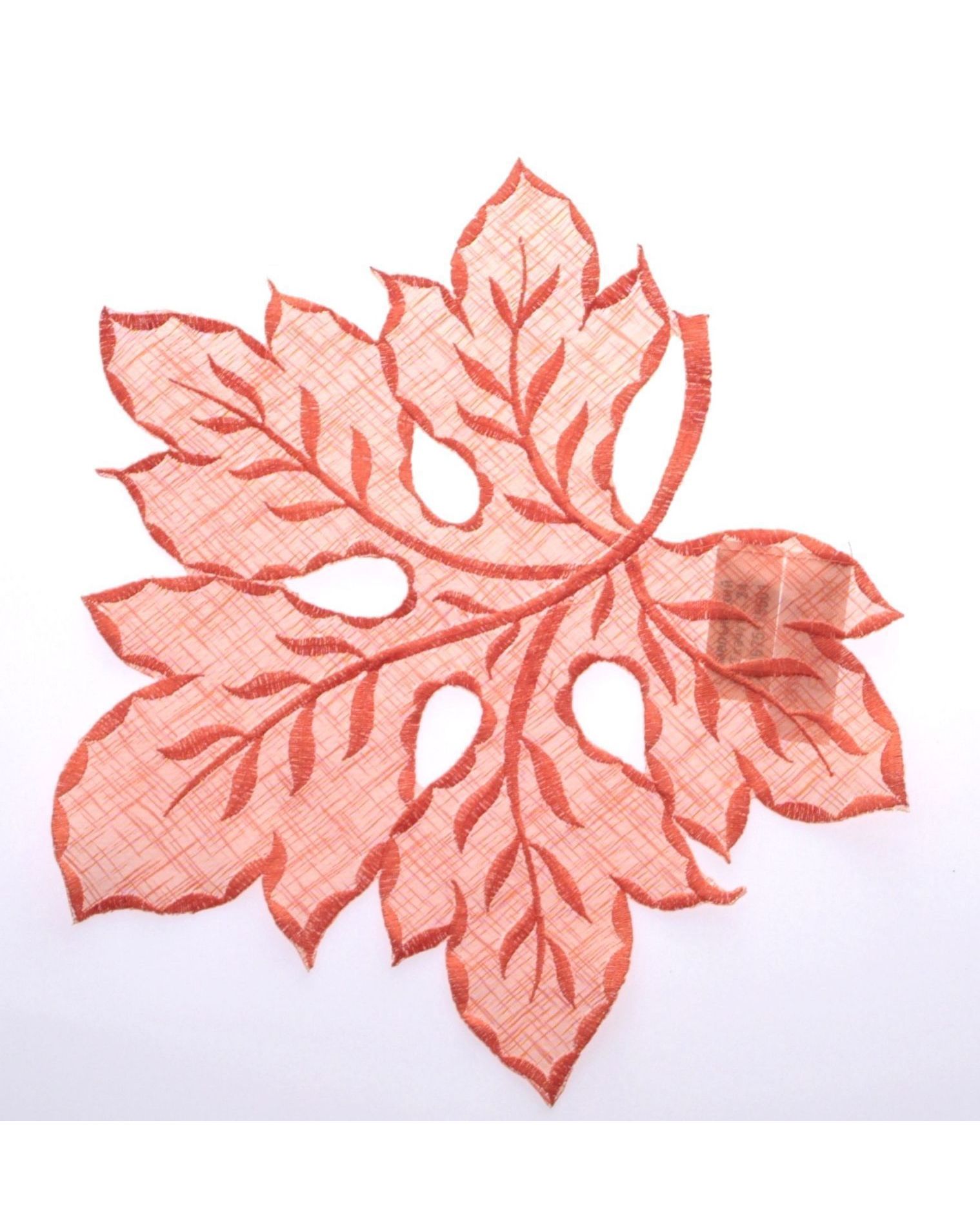 Салфетка в форме листочка оранжевого цвета с вышивкой, 30×30 см