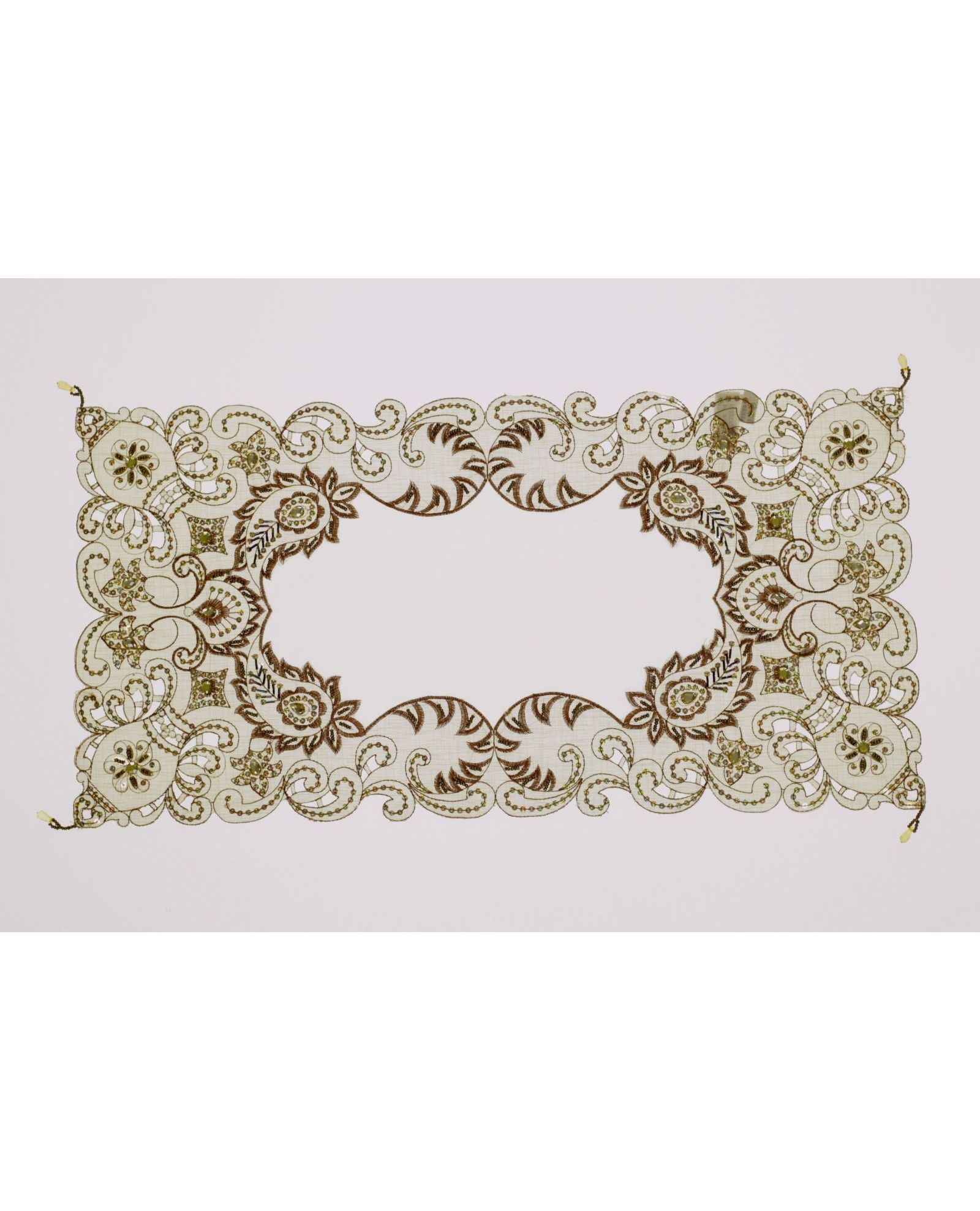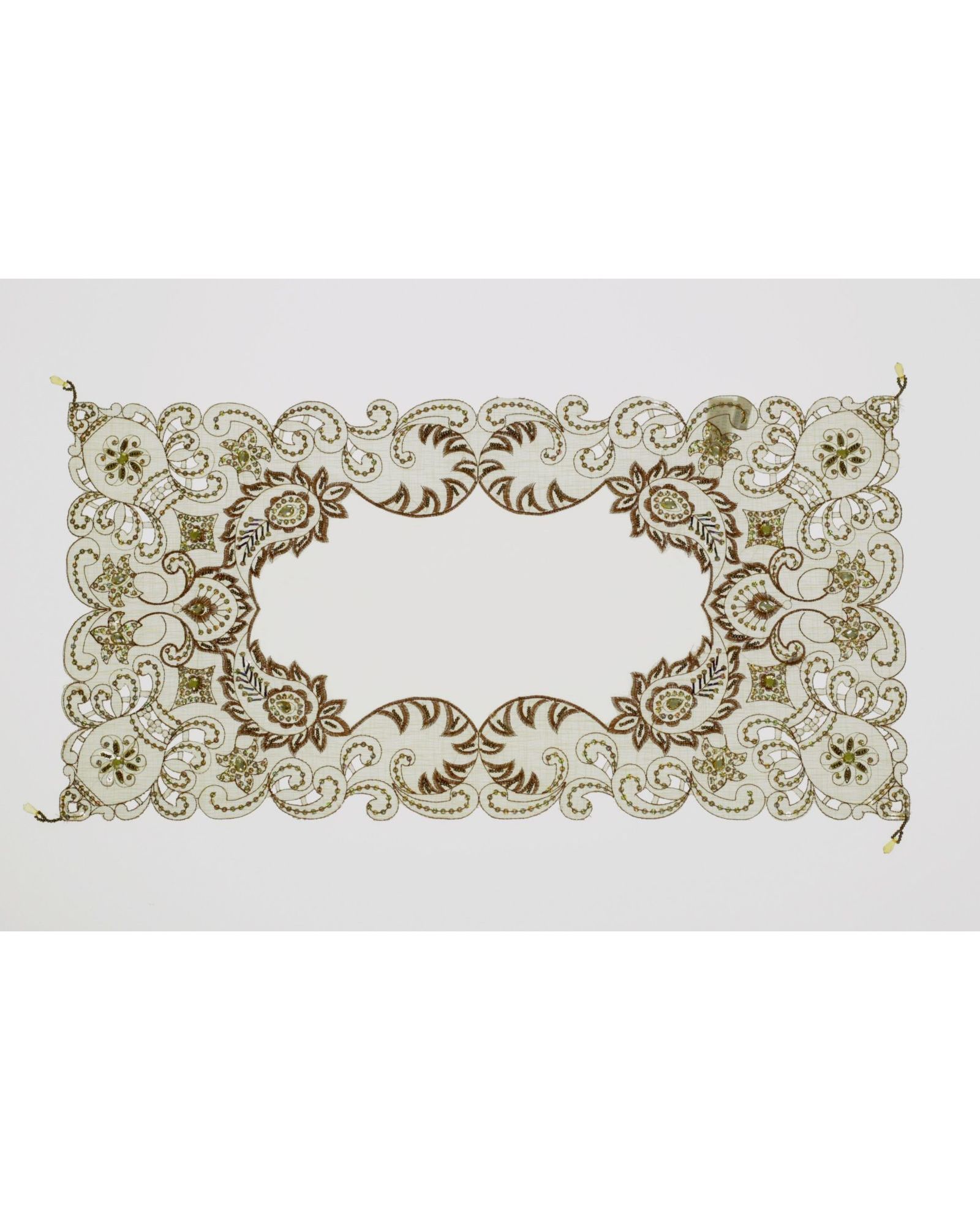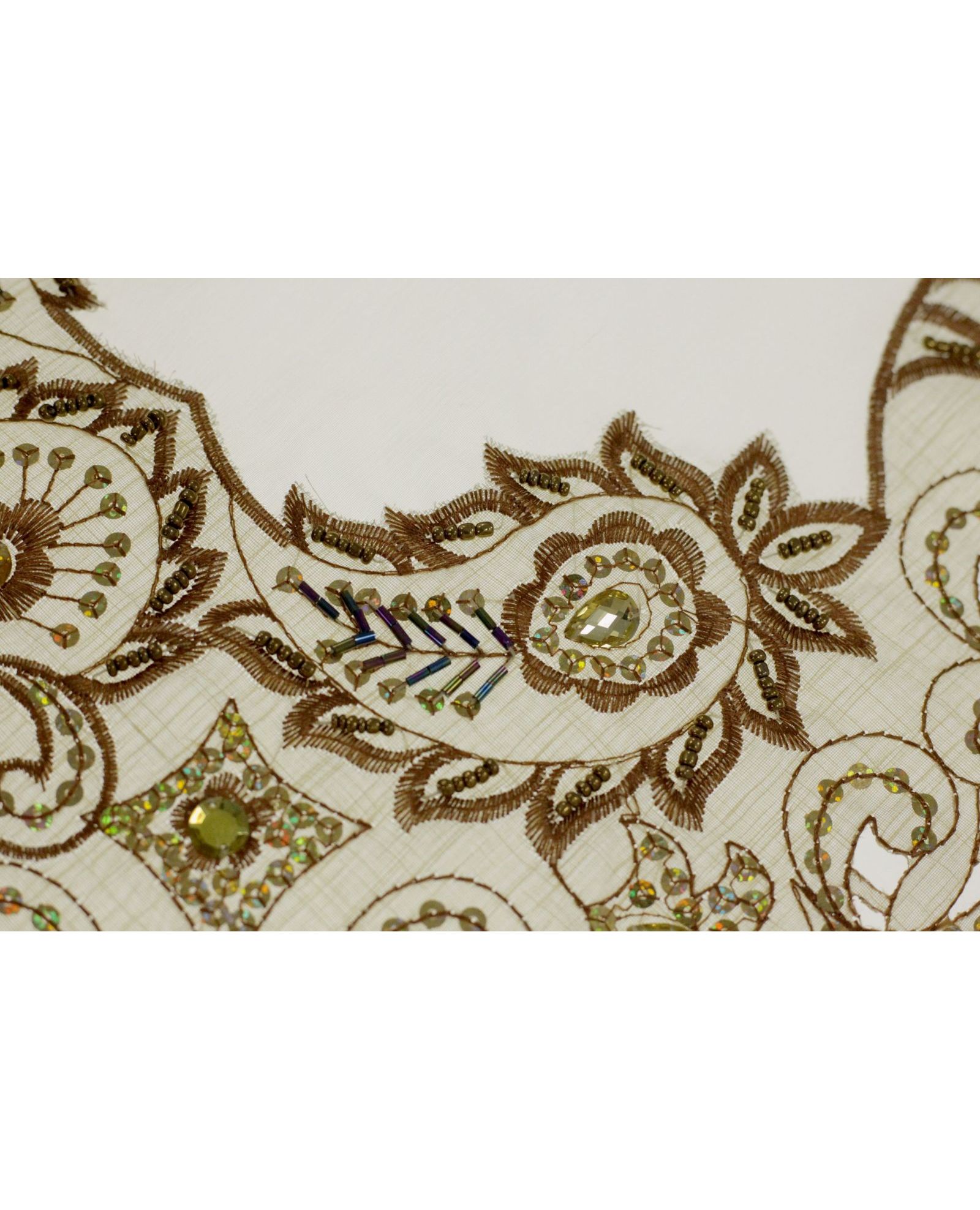 Салфетка бежевого цвета с пайетками и вышивкой, 30×75 см