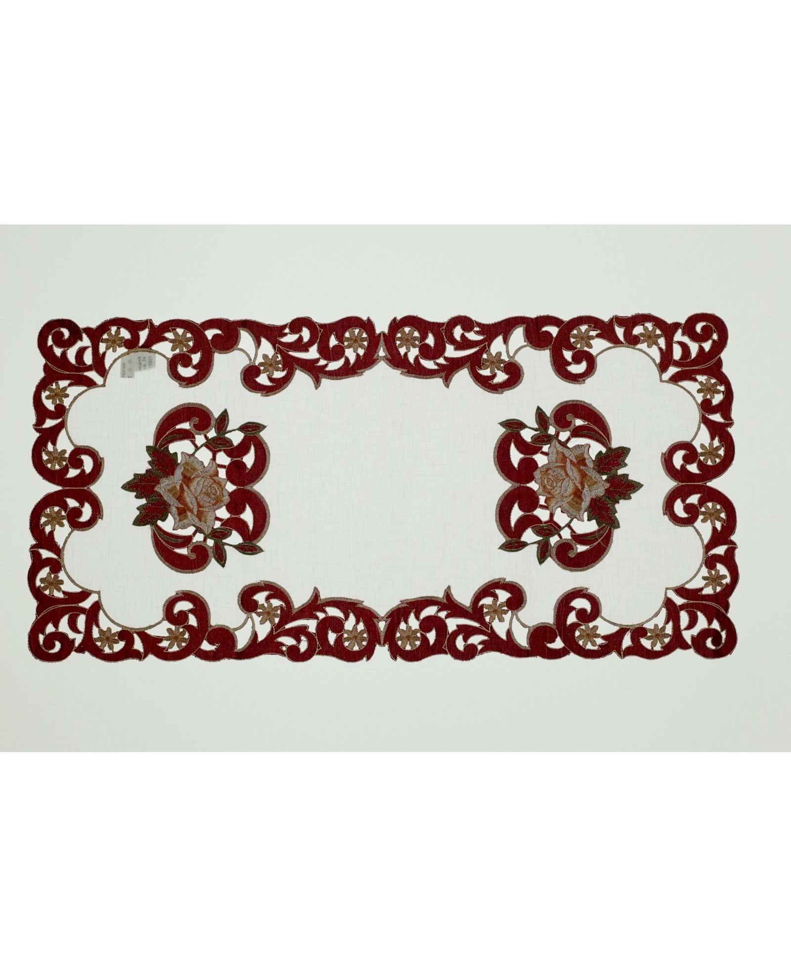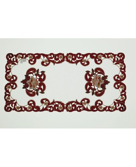 Салфетка белого цвета с ажурной вышивкой цветов 30х75 см