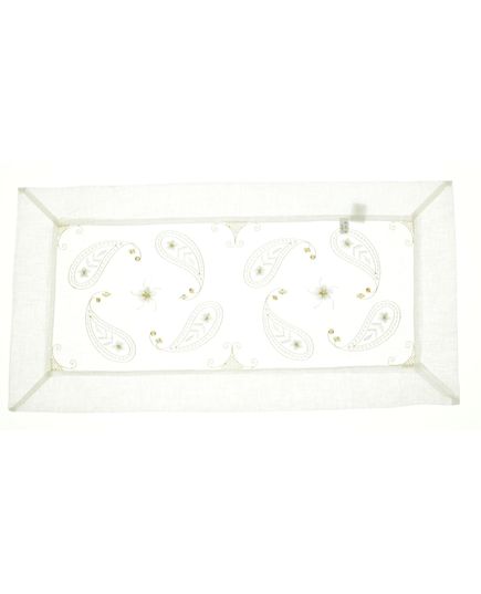 Салфетка белого цвета с вышивкой золотистой нитью, 35×70 см