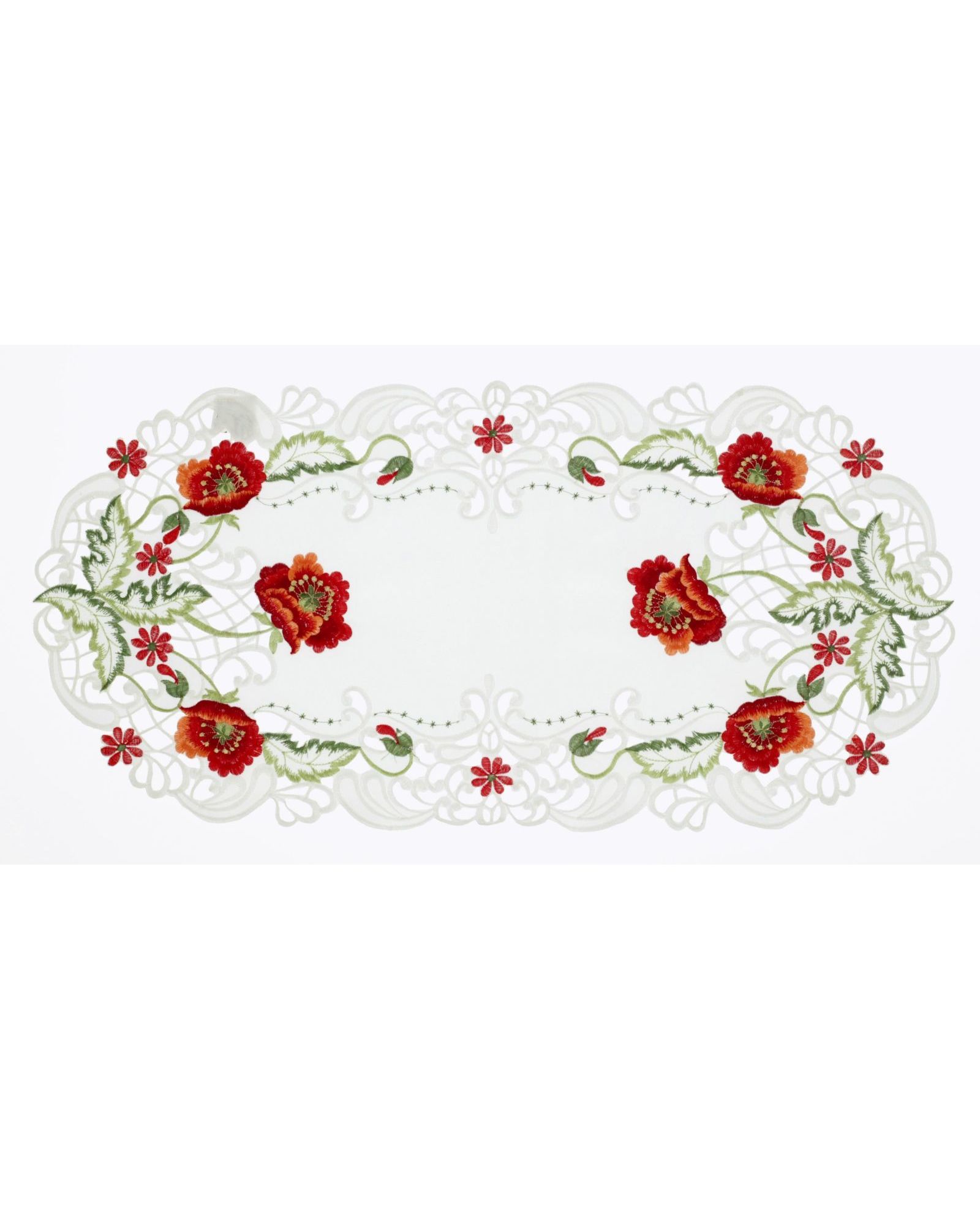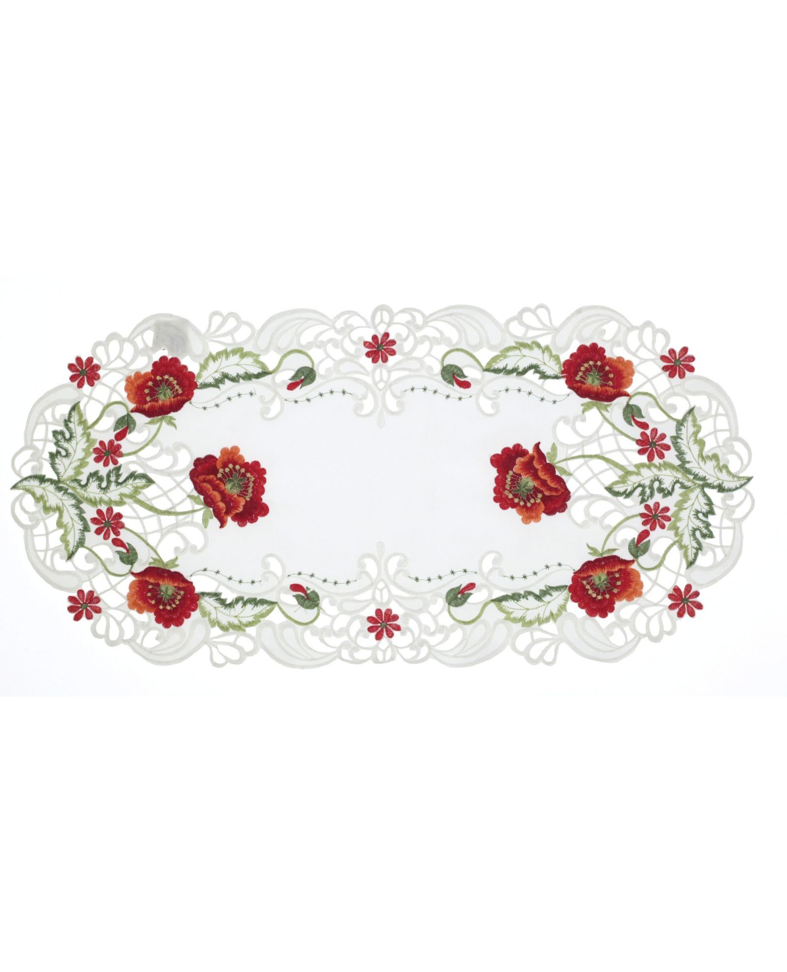 Салфетка белого цвета с ажурной вышивкой маков, 35×70 см