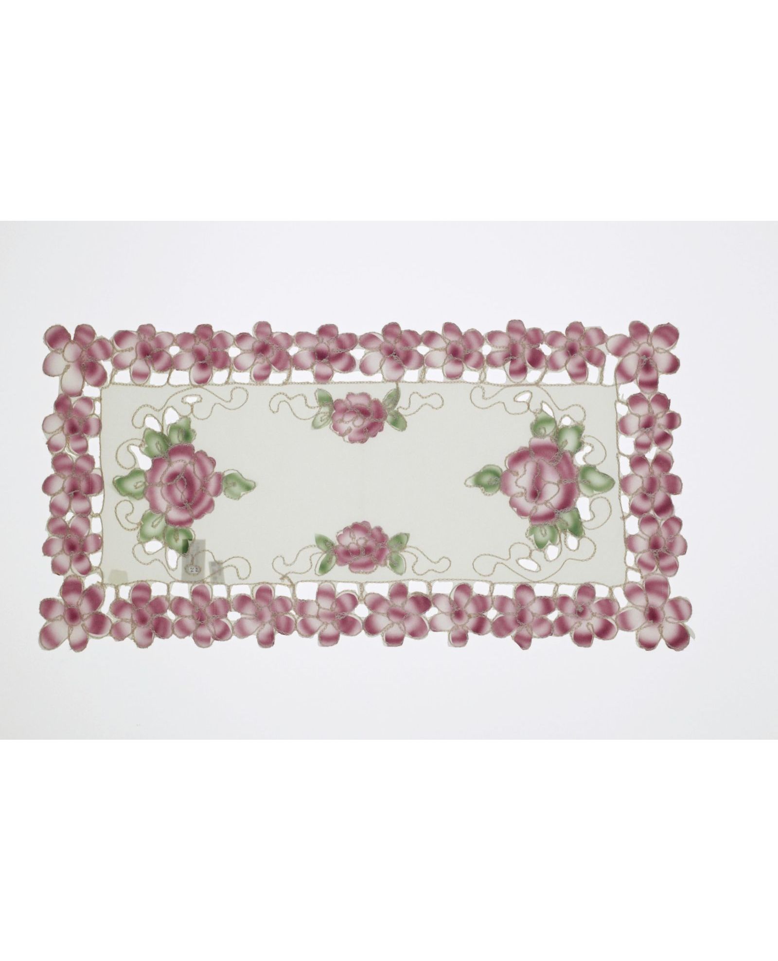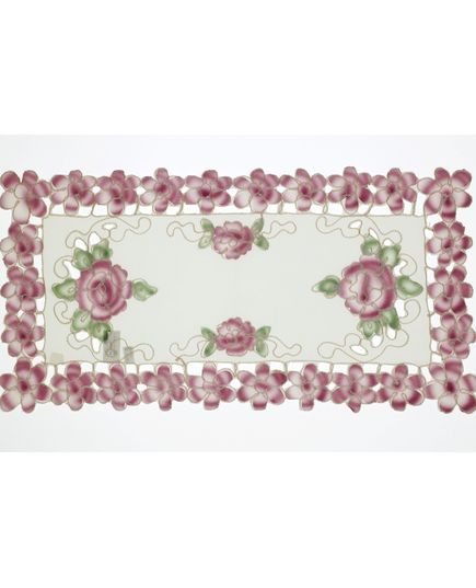 Салфетка розового цвета с ажурной вышивкой, 35×70 см