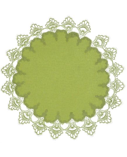 Салфетка размером 60х60 см в свежем салатовом цвете станет изысканным элементом в сервировке или декоре. Ажурное кружево по краям придаёт изделию лёгкость и декоративную привлекательность. Полиэстер гарантирует простоту в уходе и устойчивость к износу.