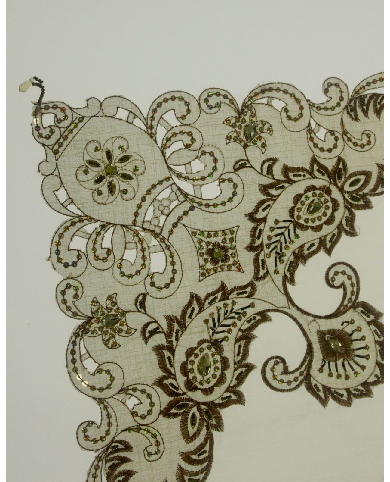 - Декор из пайеток, вышивки и бисера