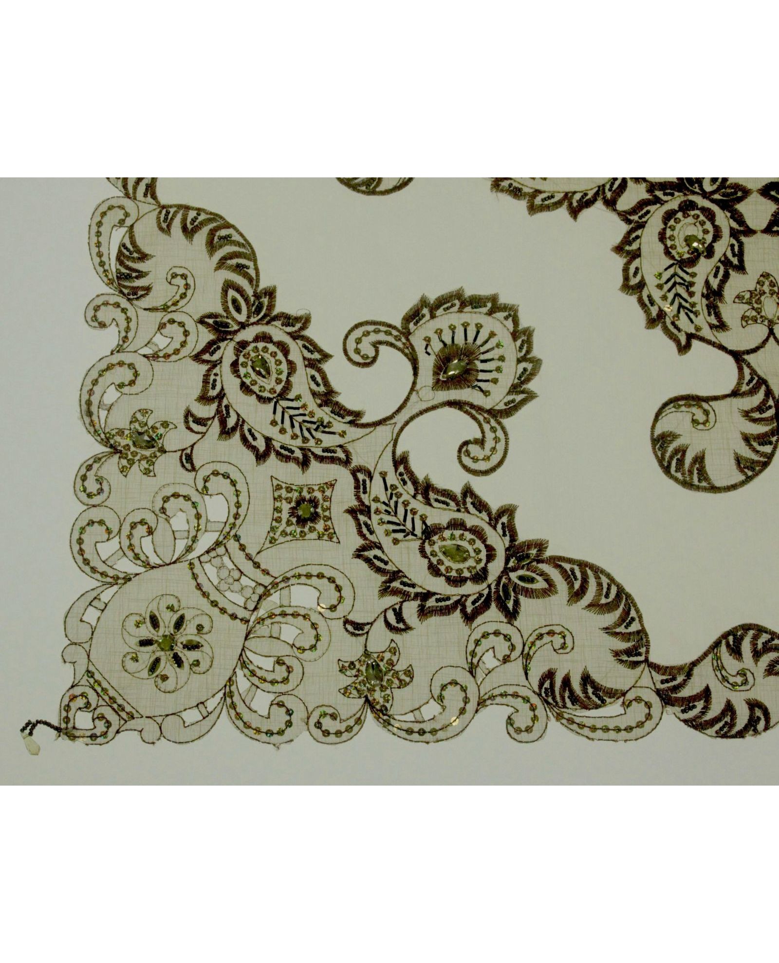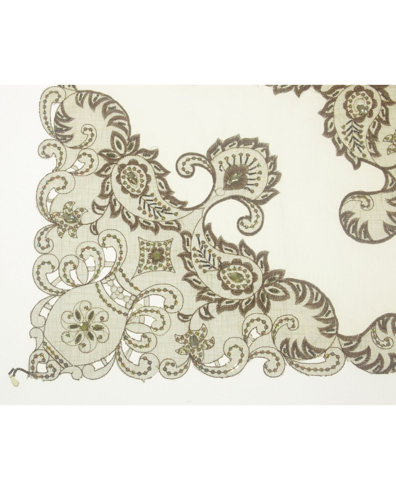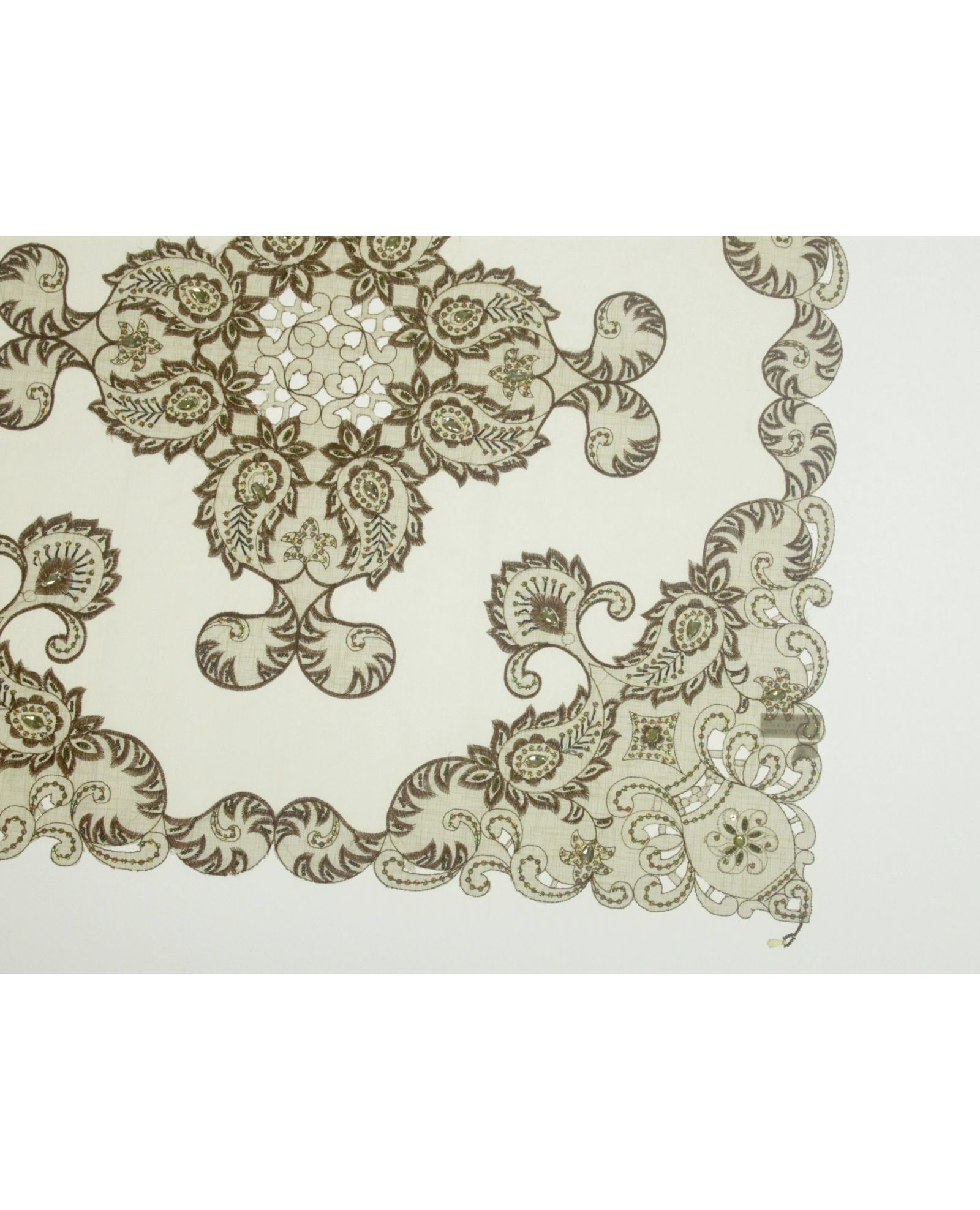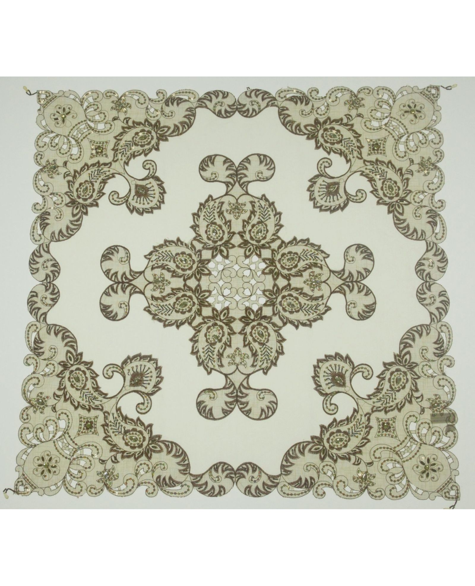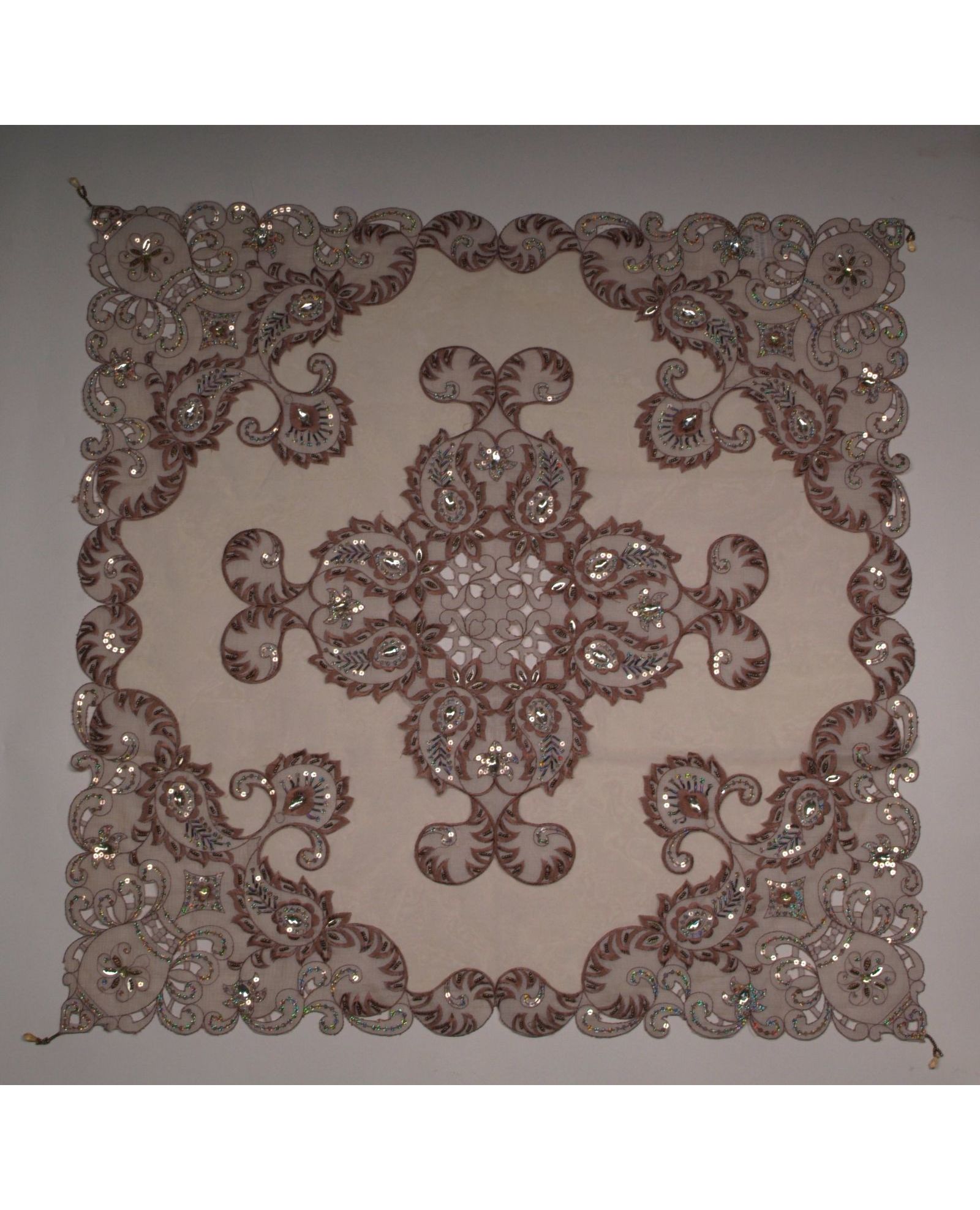 Салфетка 85×85 см коричневого цвета с вышивкой, пайетками и бисером